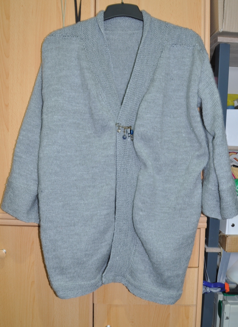 ... meine Strickjacke und warm isse, hatte sie nur mal kurz an um zu sehen ob ich die unterschiedlichen Längen vorne auch richtig hinbekommen habe,