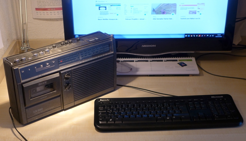 unsere Schwiegertochter hat noch Bibi-Blocksberg-Kassetten aus ihrer Kinderzeit und wollte sie bald ihrem kleinen Sohn vorspielen. Deshalb fragte sie uns nach einem Abspielgerät für Kassetten. Da mein Mann Hobbybastler in Sachen Radios ist, fand er ein solches Gerät in seinen Altbeständen im Keller.