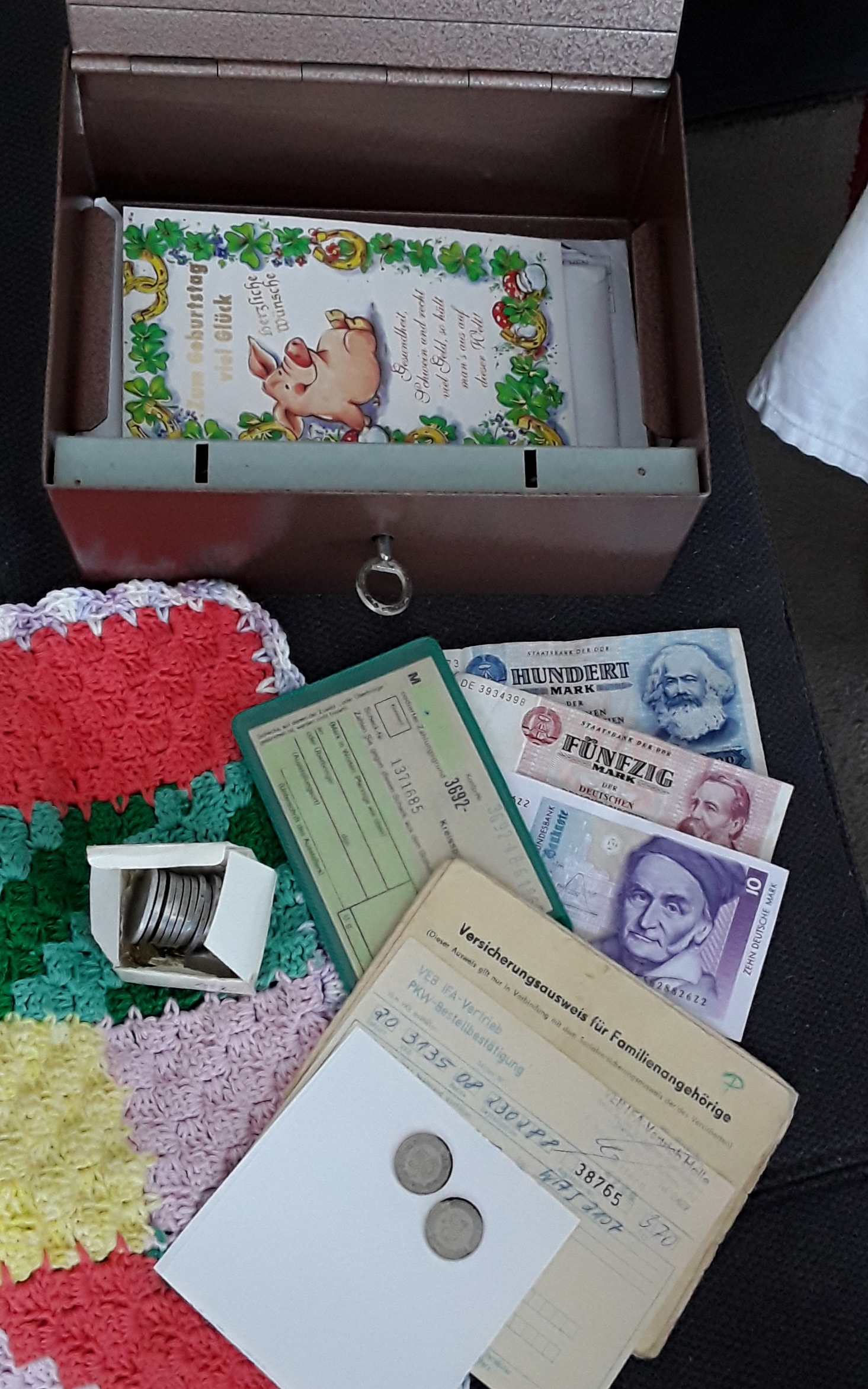 Alte DM-Münzen, Versicherungsschein und Schecks hab ich auch noch irgendwo versteckt. Und viele viele Dias und Fotoalben.