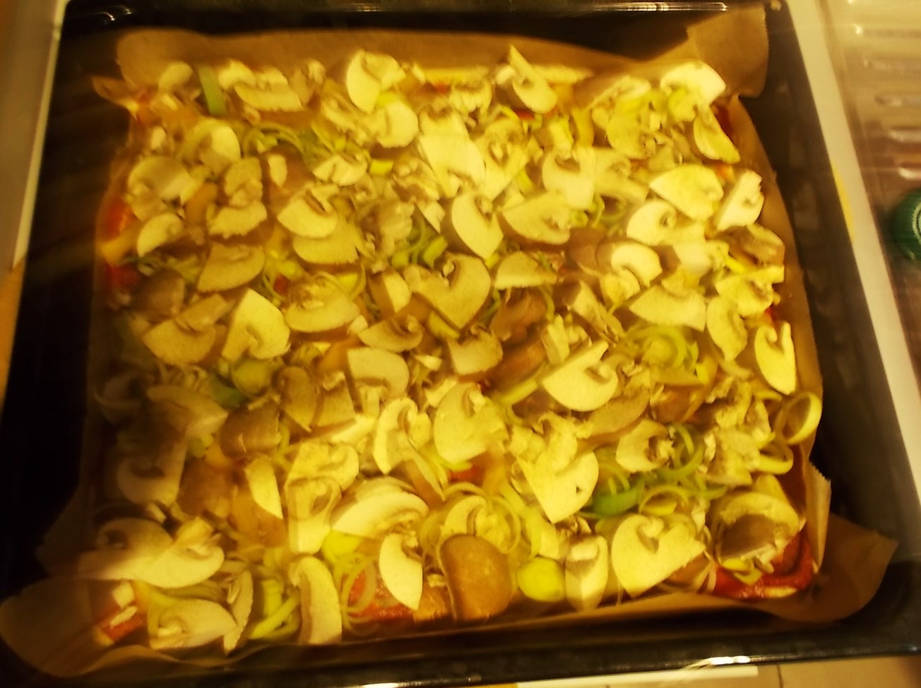 Seit ich den Pizzateig mit Haferflockenmehl (oder Hafermehl) backe, bin ich so begeistert, dass ich diesen Teig zu meinem Favorit erklärt habe. Hier können übrigens sehr gut auch Gemüsereste verwertet werden.