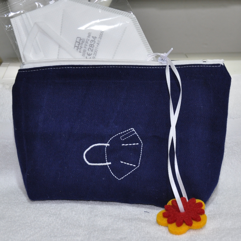hab mir heute ein kleines Täschle für meine FFp2 Masken genäht, das Motiv auf dem Täschle hab ich zuvor gezeichnet und dann digitalisiert und dann gestickt