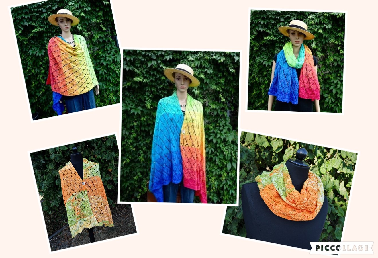 Wollen mit Farbverläufe sind was ganz Feines. Man kann mit ganz einfachen Mustern und Formen was ganz besonders Effektvolles zaubern, denn die Farbverläufe beleben jedes Teilchen. Hier kommen meine Vorschläge für Euch. Für mehr Bilder, Informationen und die Anleitung selbst klickt Ihr bitte einfach auf die Überschriften.