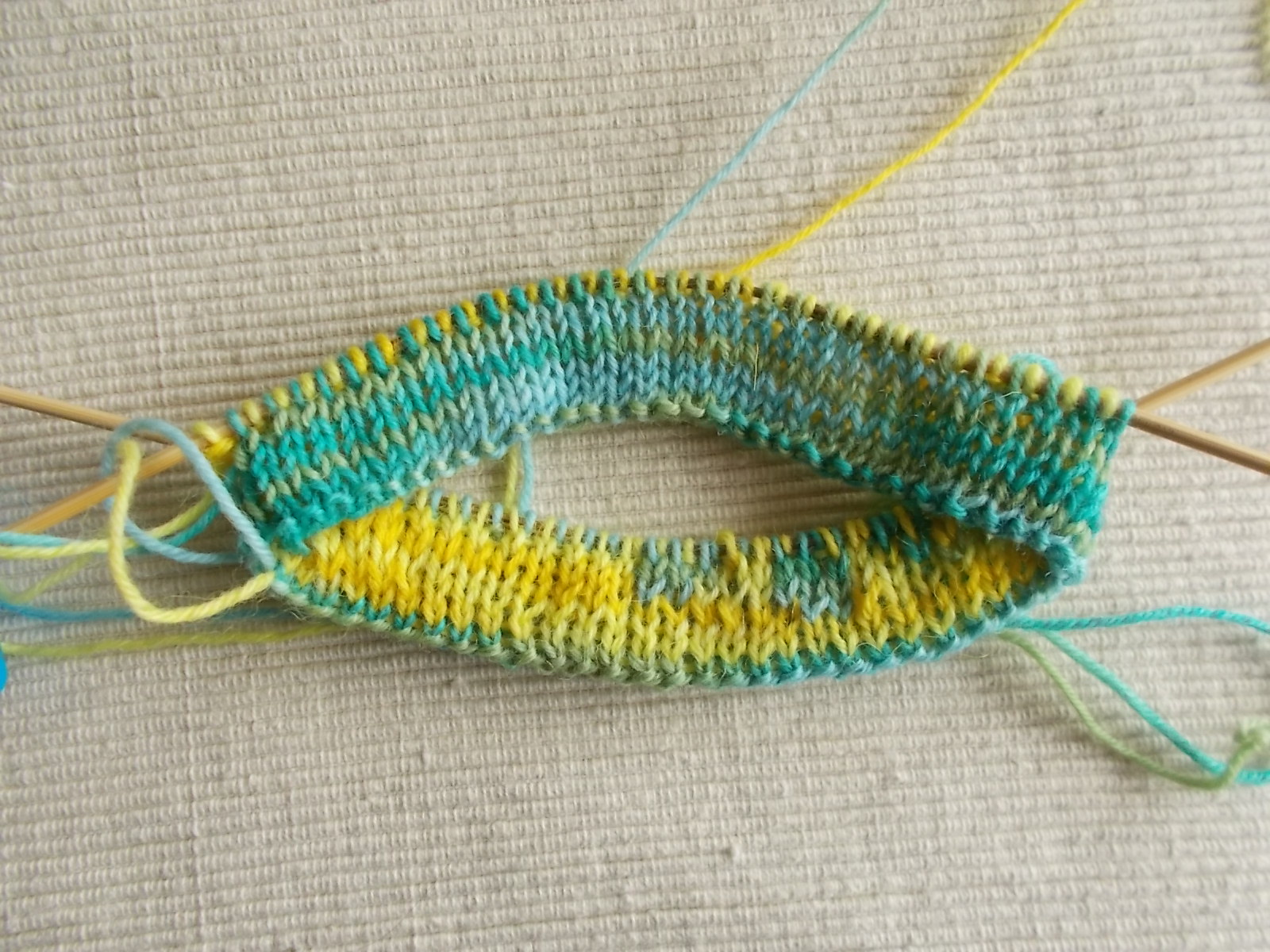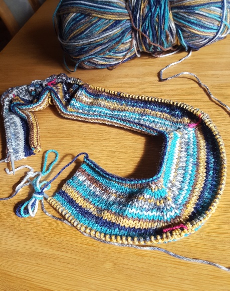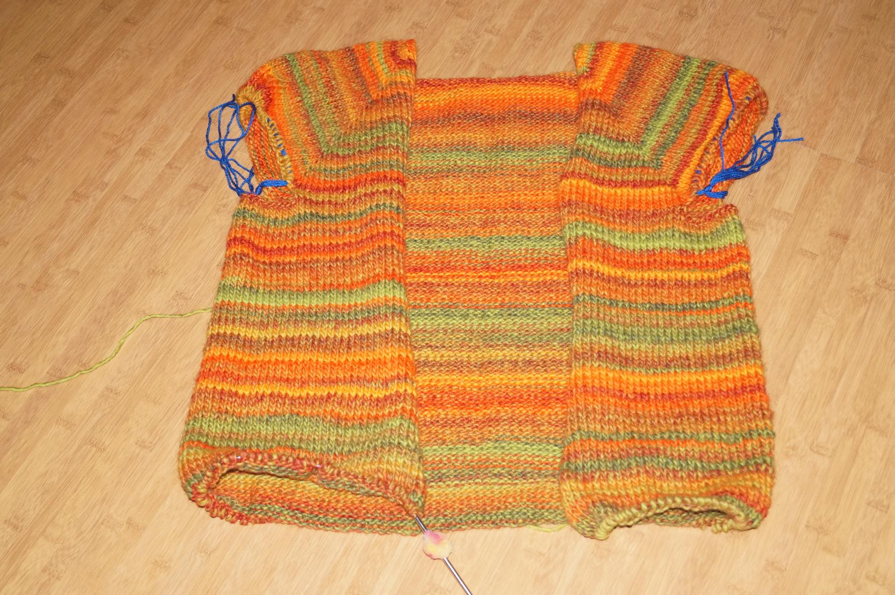 alle anderen Handarbeiten warten im Moment, das macht aber nichts, ich freu mich so über das bisherige Ergebnis, eben weil ich das erste Mal RVO stricke.