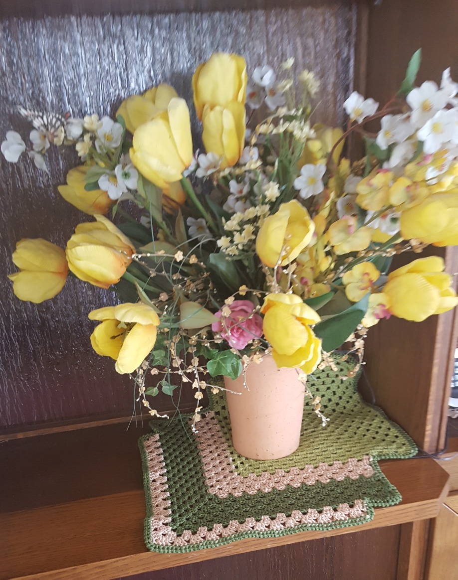 Ich hab kurz entschlossen eine kleine Osterdeko dazwischen geschoben. Die AL hat mir gleich gefallen. Ich werde auf jeden Fall noch einige häkeln.