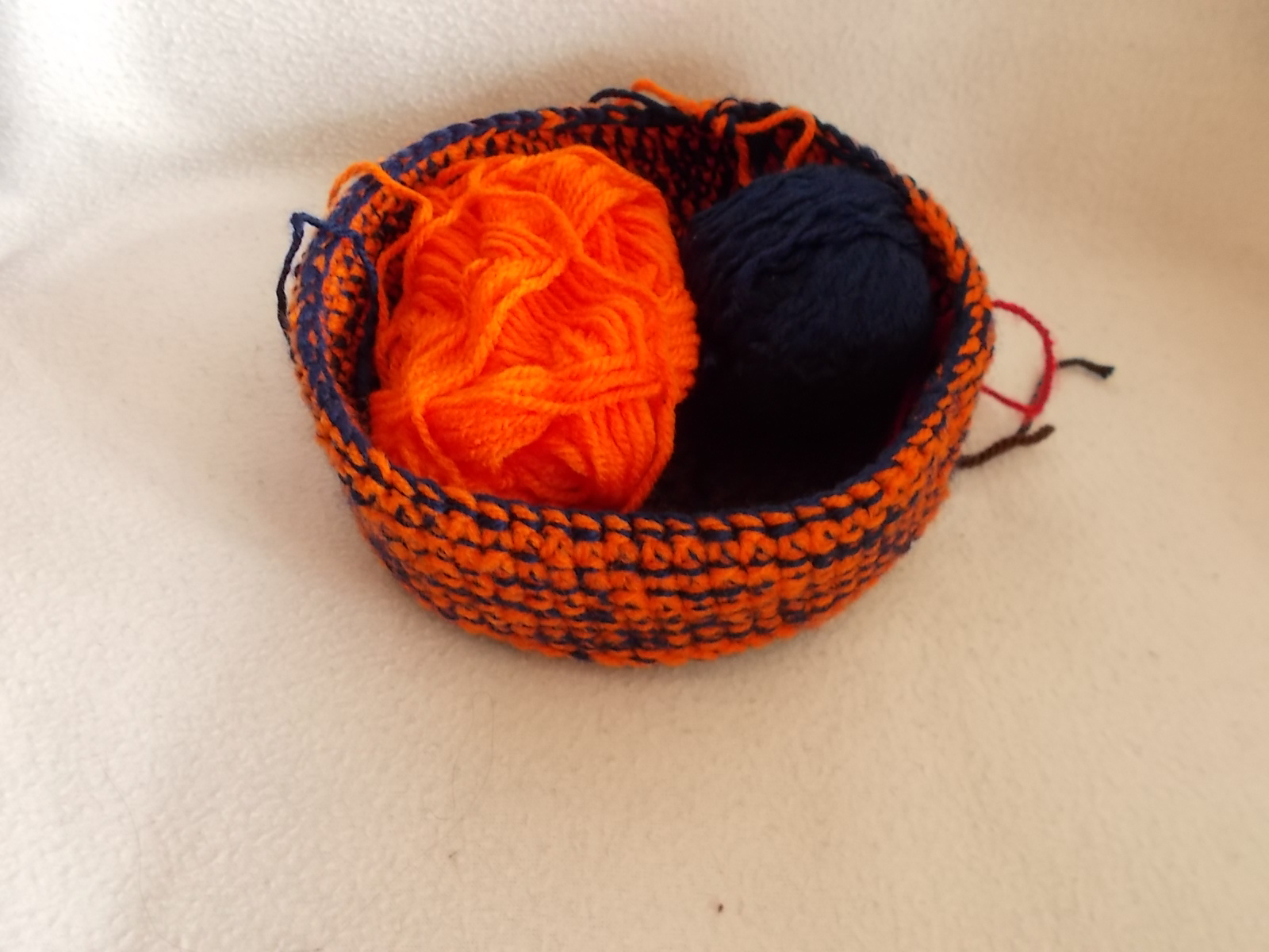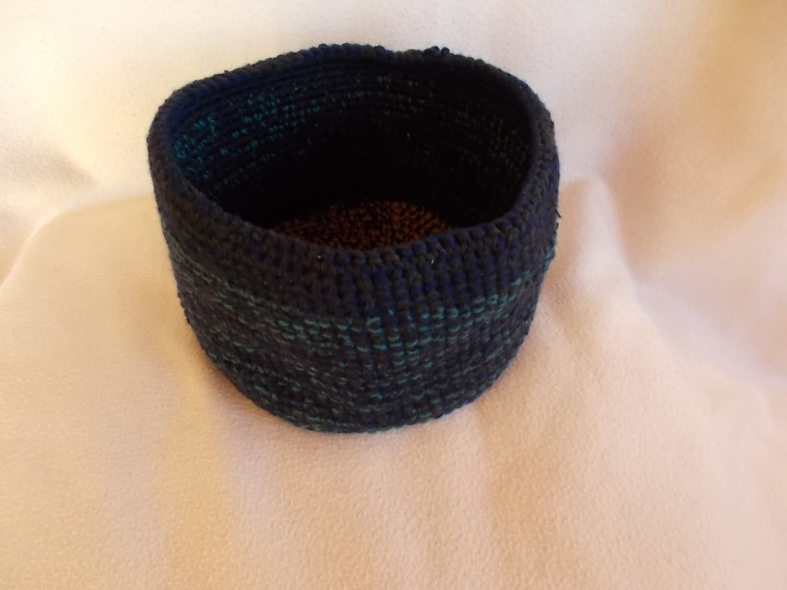 Hier ist nun das Foto vom Nest - einmal in gehäkelter Gesamthöhe und dann mit umgeschlagenen Rand.