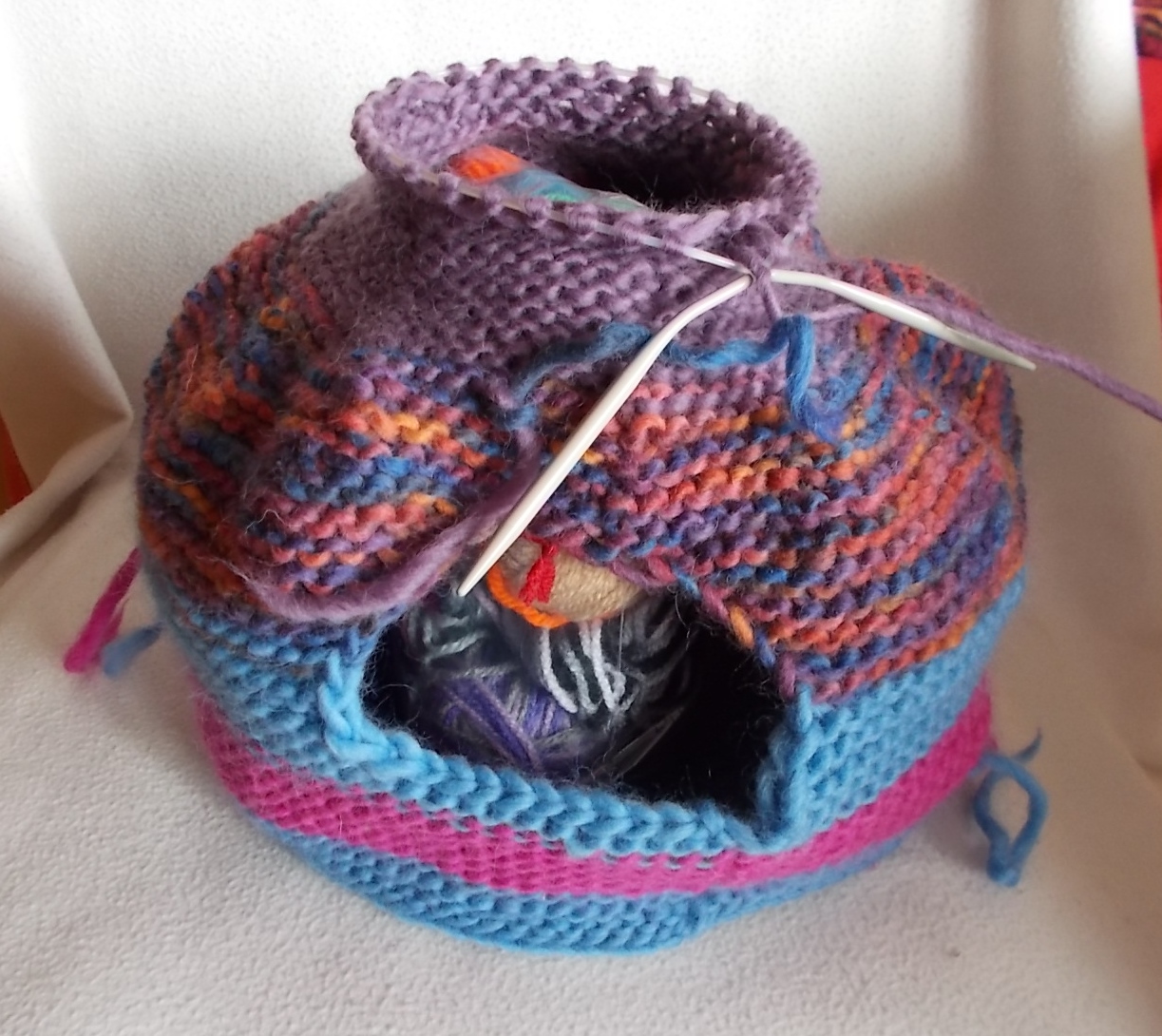 Ich wollte eigentlich nur schnell Monika zu ihrer Filzfrage antworten: Bei Deinem Kobel ist der Boden gehäkelt und das Oberteil gestrickt. In der Regel verfilzen Häkelmaschen weniger gut und weniger kräftig als gestrickte. Das heißt, dass das Unterteil wahrscheinlich etwas weniger verfilzen wird als das Oberteil - aber das würde ja passen.
