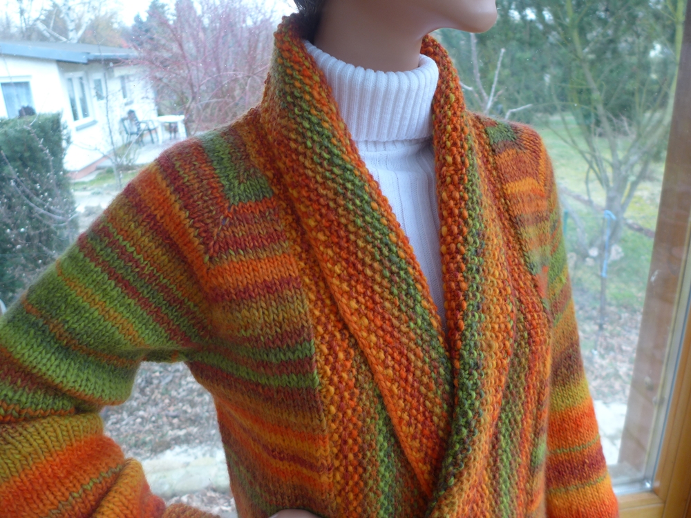 ich habe am Wochenende fleissig die Nadeln klappern lassen und zeige euch mal wie weit ich schon mit der Strickjacke bin