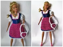 Kurzes Dirndl mit angehäkelter Bluse, Schürze im Lochmuster und Herztasche