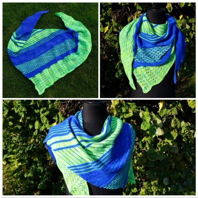 Mit nur 200g Wolle in Sockenwollstärke wird dieses abwechslungsreiche Tuch gestrickt.