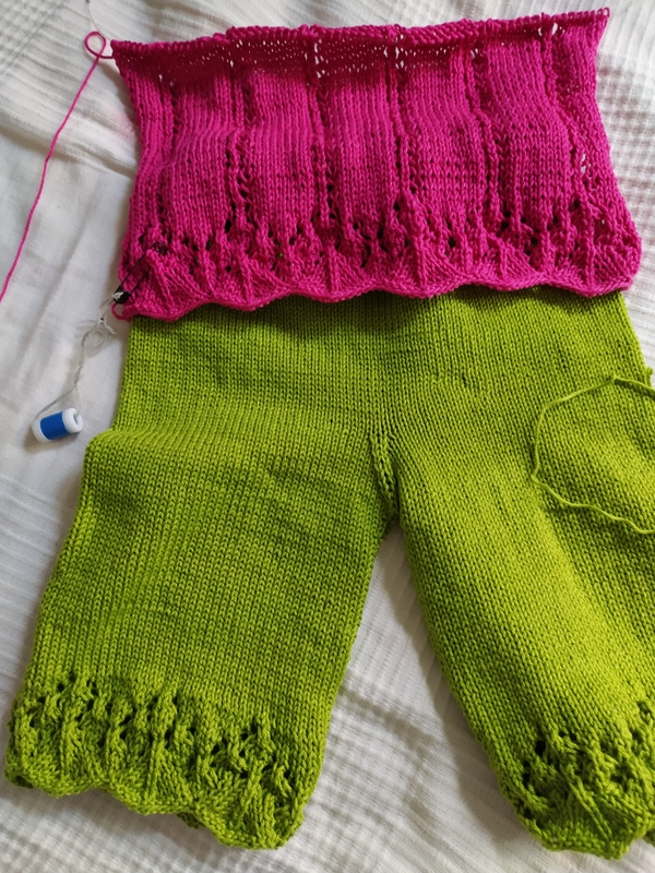 Ich stricke an der Hose von Petra. Das erste Bein ist schon ordentlich weit gediehen. Daneben warten ein paar Sachen auf die letzten Details .Dazu muss ich mich immer aufraffen, vor allem, wenn sie schon ein paar Tage liegen! Bügelwäsche wartet auch noch…
