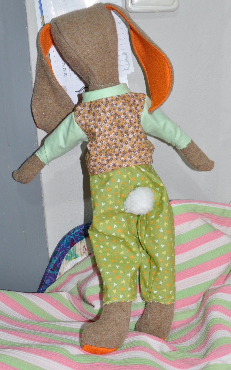 Danke Monika, heute nochmal nen Hoppel genäht, zwar ned aus Plüsch, aber aus einem rest von meinem Lodenmantel den ich vor Jahren ausnander genommen hab. Heute hat Hoppel auch ein Puschelschwänzle bekommen, der von gestern hat keines