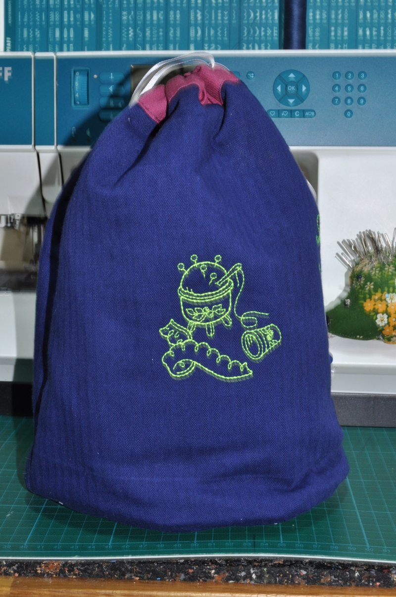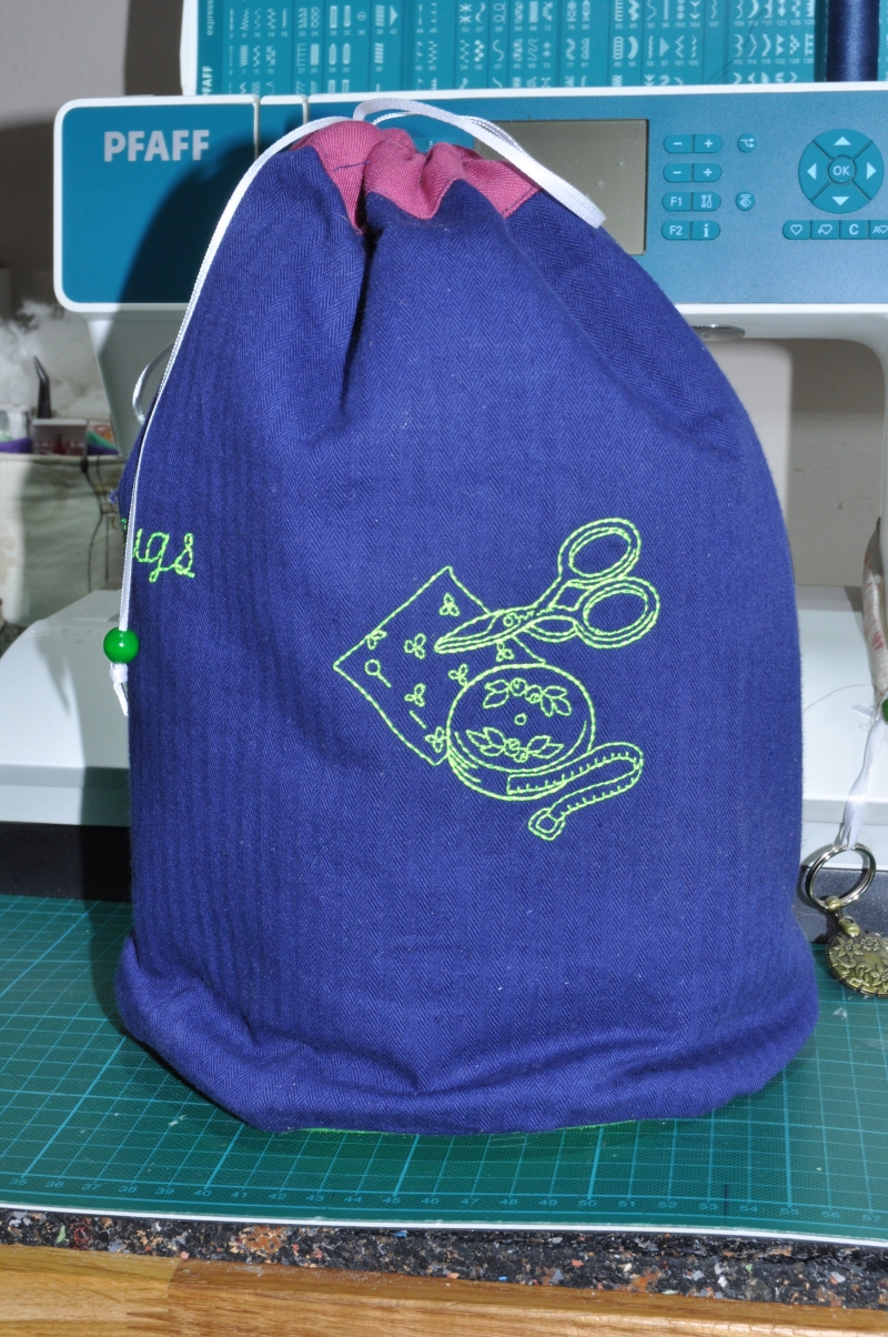 ich hab gestern Greenwork auf einen Beutel gestickt, das Motiv mit dem Wollknuddel hab ich mal digitalisiert, die anderen beiden sind Freebee von Brother