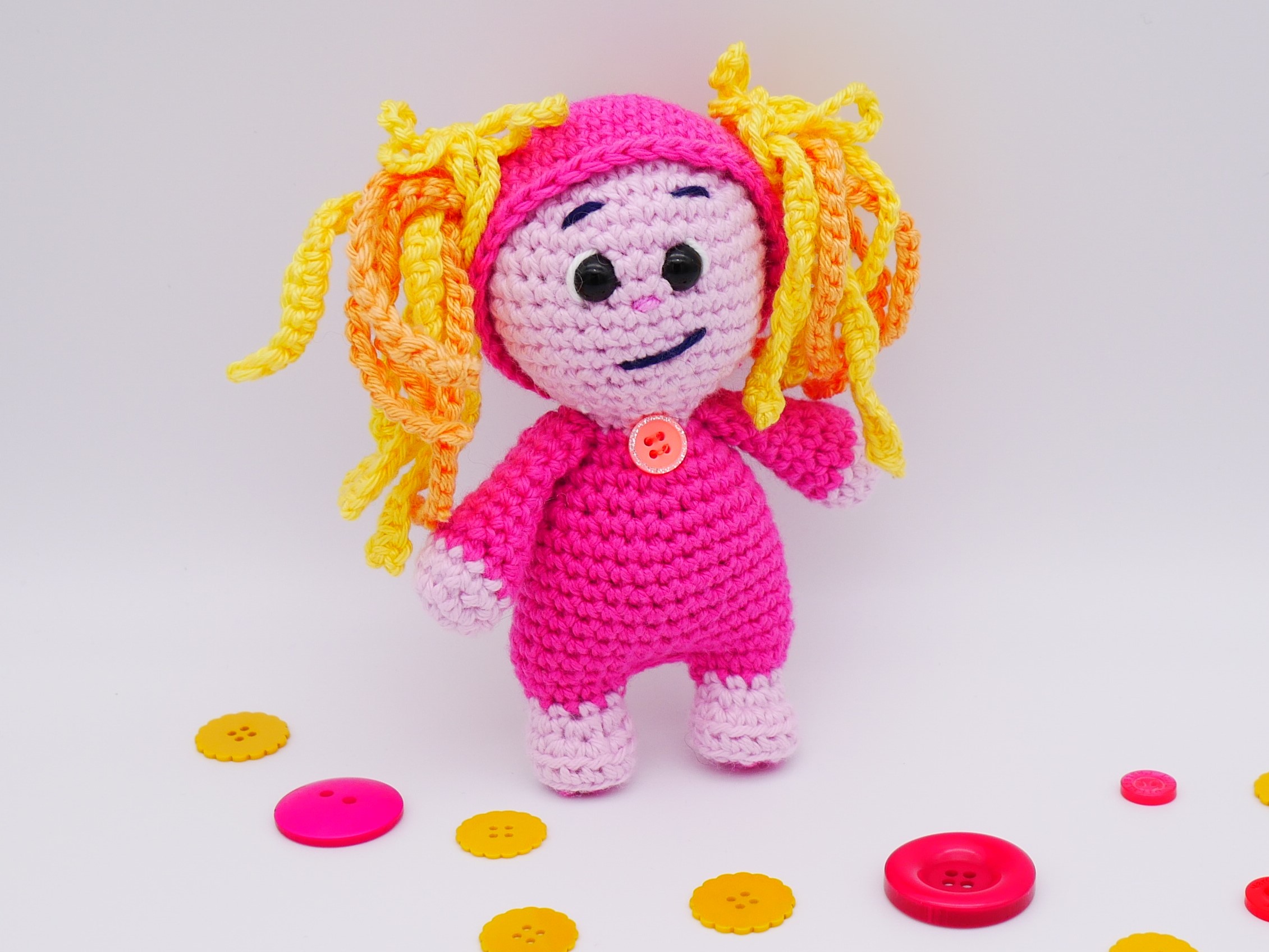 1 Knäuel Garn = 1 wunderschönes gehäkeltes Puppenkleid. Der Tüll wird am Schluss unter das Kleid genäht und die Röschen werden aufgenäht. Für den Rock gibt es eine Häkelschrift. Alle kleinen Mädchen lieben dieses Kleid.