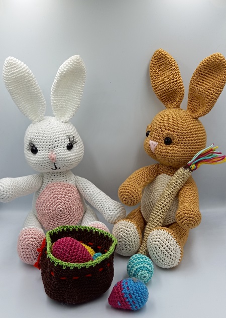 2) Die "Sweet Little Chicks"  werden mit der raffinierten Doppelmaschen gehäkelt - dadurch sind sie wunderbar zum Besticken geeignet.