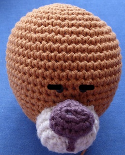 Eine Frage an die Amigurumi-Expertinnen: Wie kann ich ein Bärchen für ein Baby so lieb dreinblicken lassen? Sicherheitsaugen kommen nicht in Frage und ich tue mich gerade unheimlich schwer damit, dem Tierchen den richtigen Ausdruck zu verpassen. Kreise aus dünnem Garn häkeln und aufnähen oder Augen aufsticken (mache ich nicht gerne, da ich Mühe habe, die runde Form schön hinzubekommen)? Ich habe auch schon Knoten als Augen verwendet, aber die wären hier zu klein und zu wenig rund. Die Stecknadeln auf dem Bild habe ich bloss zur Orientierung für die Schnauze gebraucht.