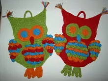 "Crazy Eulen", Topflappen in den Farben des Crazypatters-Logos peppen nicht nur deine Küche auf sondern sie sind auch äußerst nützlich. Die Eulen werden doppelt gehäkelt, so dass man mit der Hand wie in einen Handschuh schlüpfen kann. Gehäkelt wird hauptsächlich mit festen Maschen. Das Schuppenmuster für den Brustfleck und die Flügel wird in der Anleitung ausführlich und mit Bildern erklärt.