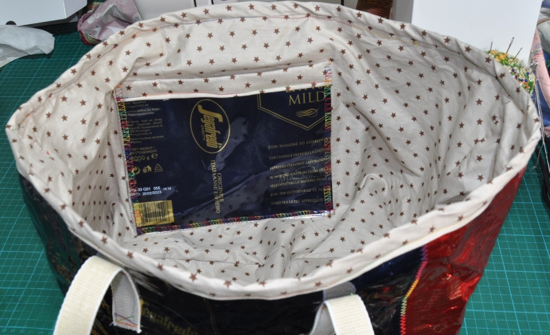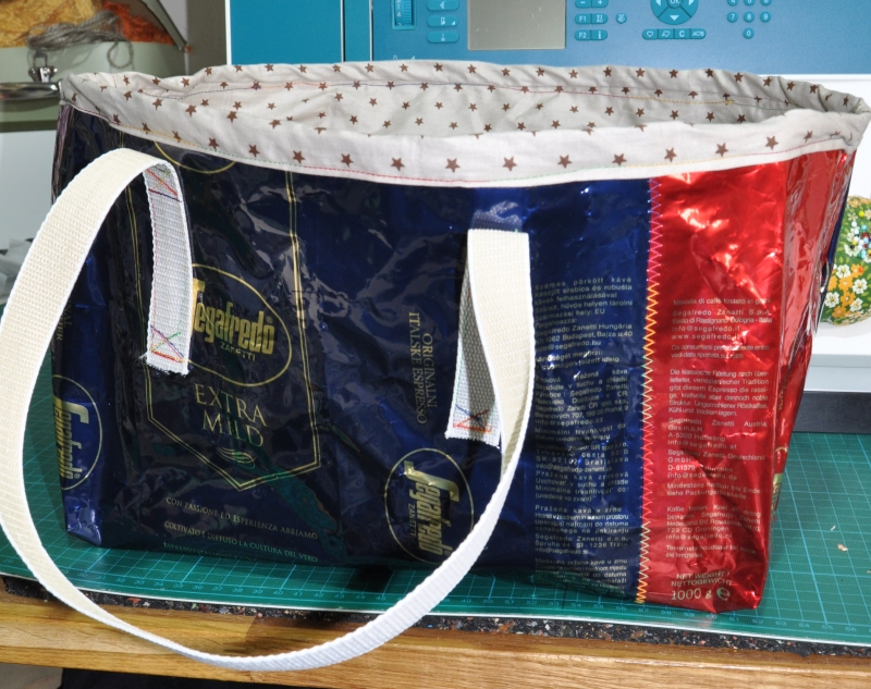 hab heute mal eine Kaffeetasche genäht, habe bei meiner Tochter die leeren Kaffeetüten bestellt, denn den wir trinken hat diese Tüten nicht.