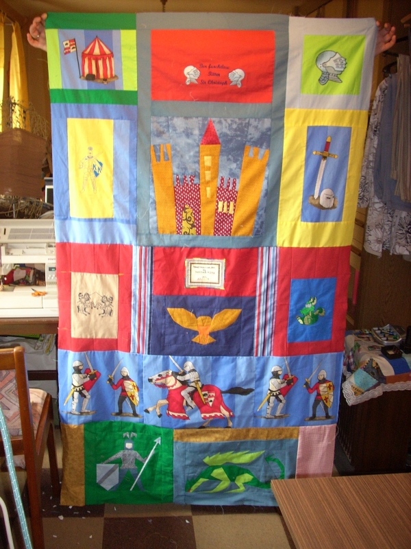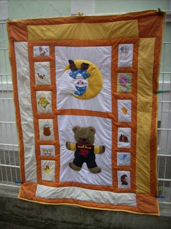 ina, ich hab 3 Töchter, 5Enkel und 3 Schwiegersöhnemeine Töchter und die Enkel haben jeder bis zu 3-4 Quilts von mir bekommen, die Schwiegersöhne je einen, selber habe ich einen großen Waschkorb stehen wo auch noch einige Quilts drin sind. Als wir vor 18 Monaten umzogen hab ich meine riesige Quiltsammlung aufgelöst und da nochmal Decken an meine Kinder verteilt.