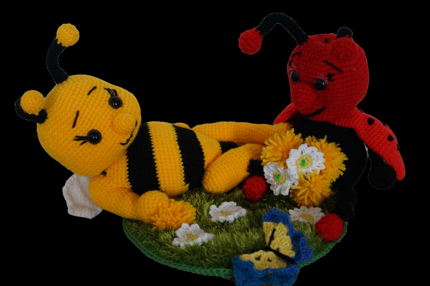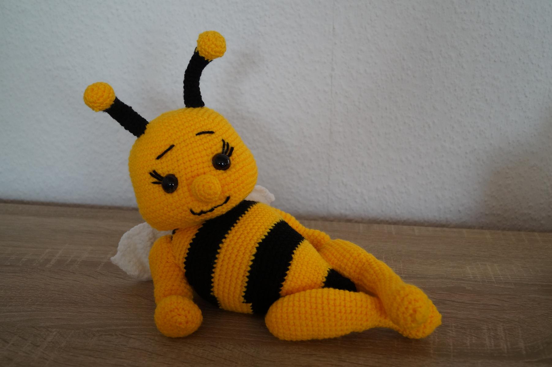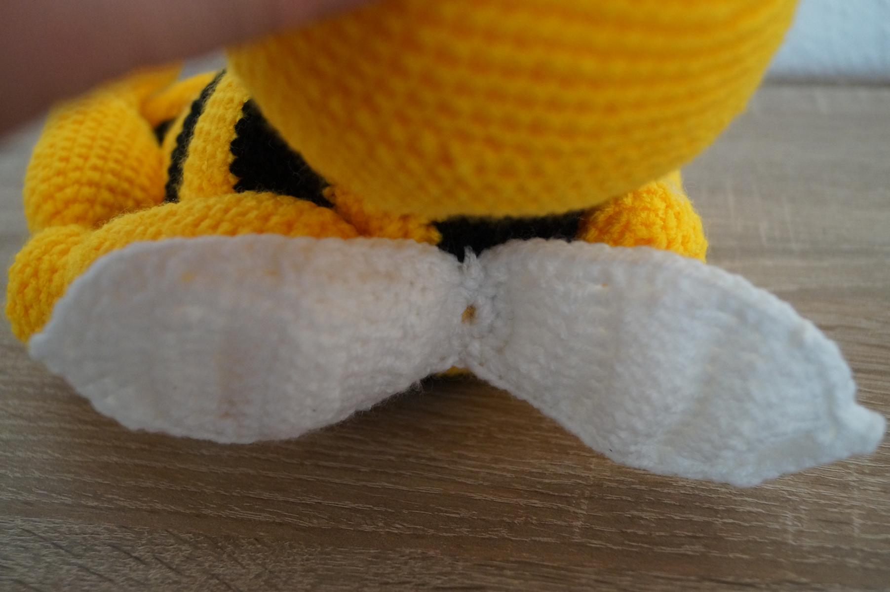 Die lachende Biene Maja sieht ja schon sooooo niedlich aus. Dazu das leuchtende Gelb-Schwarz. Das wird eine richtige Wuchtbrumme :-) Und so groß. Ich bin ganz fasziniert - und nun gespannt, wie sie am Ende ausschaut. Flügel sind ja schon schwer zu machen oder?