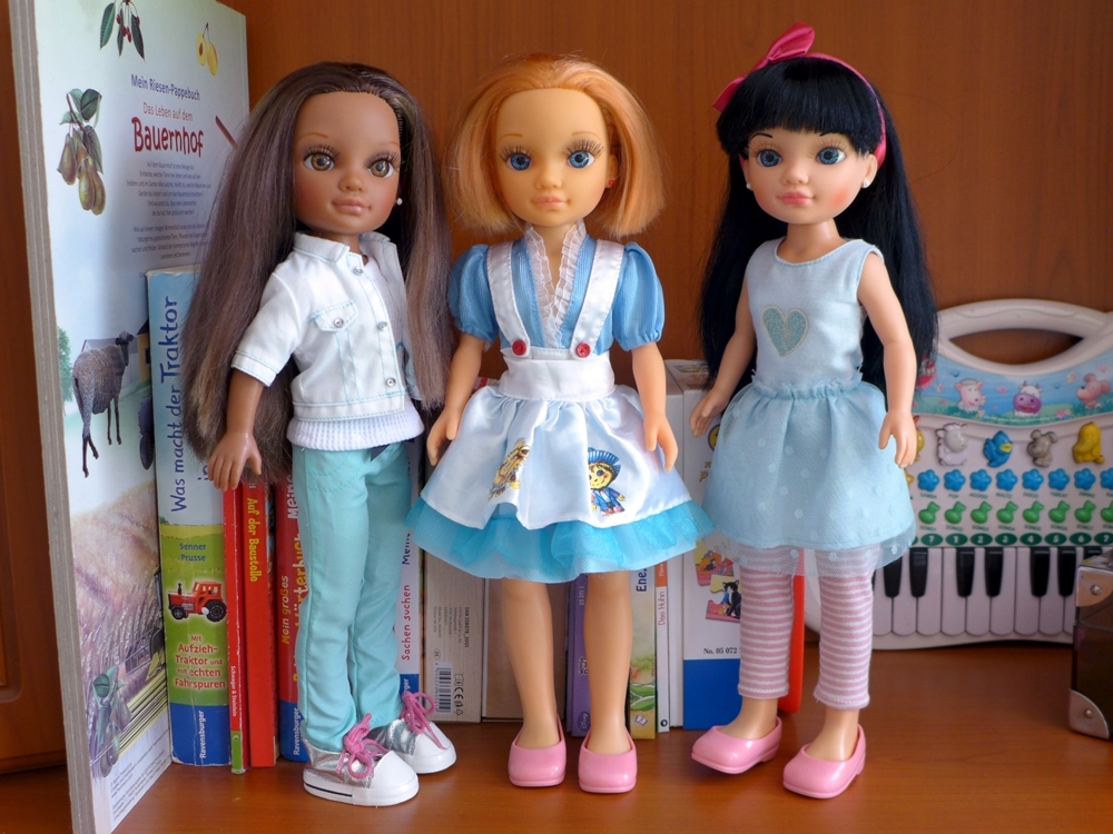 ich wollte Euch nur kurz meinen Neuzugang vorstellen. Diese drei Schönen gab es neulich in meiner Tauschbörse zu tauschen. Eine Tauschpartnerin hat ihre Puppensammlung aufgelöst und ein neues Zuhause für sie gesucht. Deshalb konnte ich auch nicht nur eine tauschen, sondern musste alle drei zu mir nehmen. Ihr versteht bestimmt, dass ich diesem Blick unter langen Wimpern nicht widerstehen konnte.