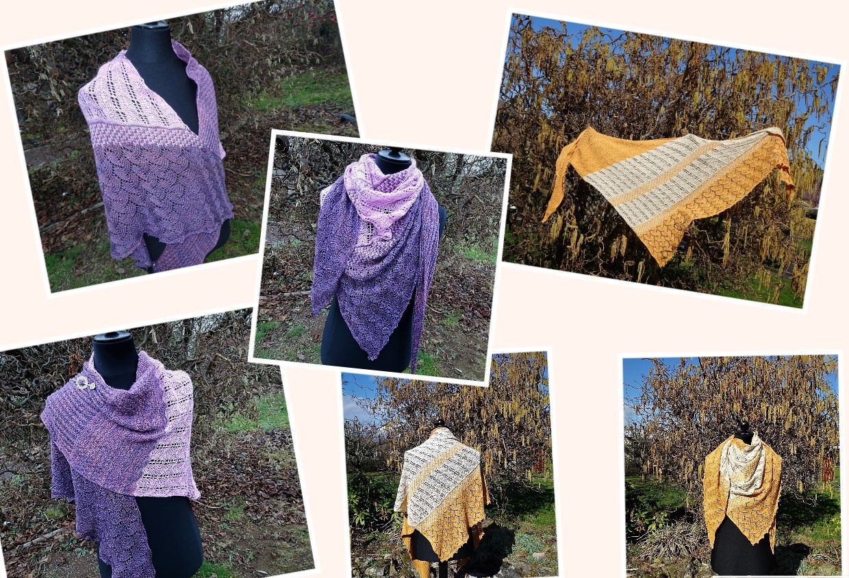 2) Auch das Dreieckstuch "Mayla" wird immer wieder gerne gekauft - klassisch schön und luftig leicht. Das Lochmuster ist sehr einfach zu arbeiten, wiederholt sich alle 2 Reihen und geht wunderbar einfach von der Hand.