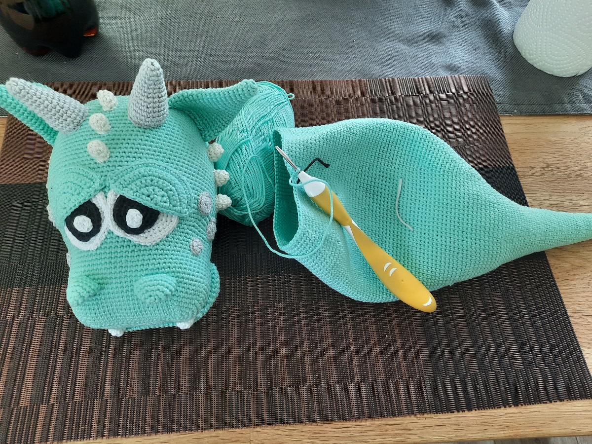Nun zu mir. Bei meiner Therapiedecke hab ich einen ziemlichen Hänger. Die letzten ca. 50 Reihen haben mich so gar nicht angemacht, so dass ich ein kleines Projekt dazwischen schieben musste. Das ist gestern fertig geworden: