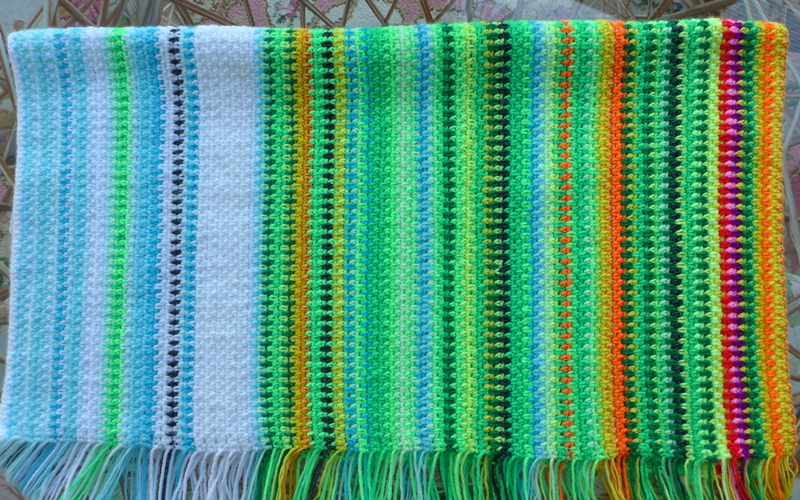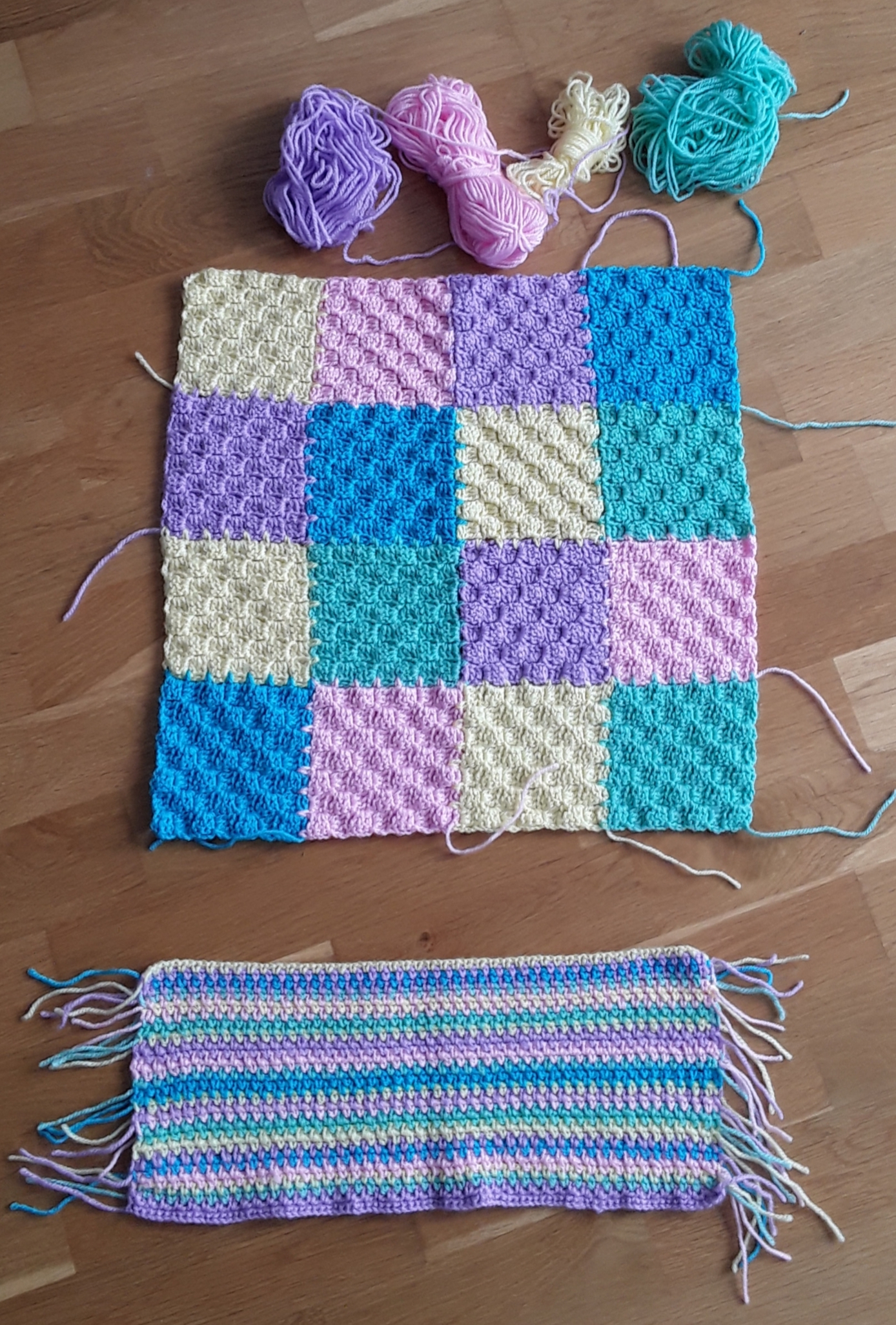 Ein kleines Tuch in Doubleface, für meine Tochter. Sie liebt es :-) Jetzt gibt es für mich aber keine Ausflüchte mehr, und ich habe mir fest vorgenommen, die letzten Reihen an der Decke so schnell wie möglich zu beenden. Schimpft bitte mit mir, falls ich mich doch wieder von einer anderen Idee ablenken lasse *lach*