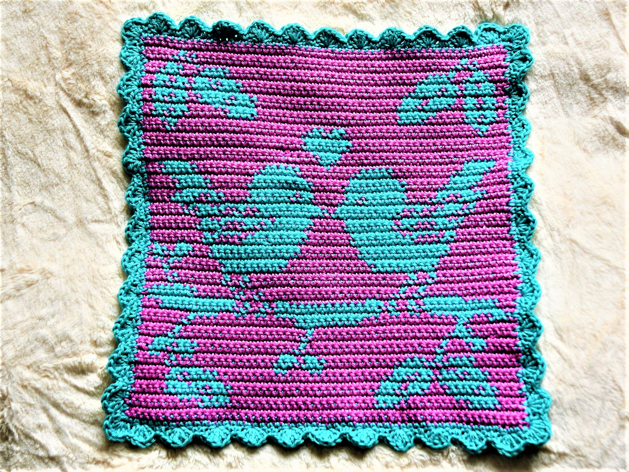 Auch die Kindergarten- bzw. Umhängetasche für Kleinkinder ist in ähnlicher Art und Weise gehäkelt. Die Träger lassen sich in verschiedene Längen verstellen. Meine Enkelin liebt ihre Tasche.