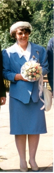 Bei meiner  ersten Hochzeit ein Kleid aus Dederon (Kennt dass noch jemand) mit Hut und Schleier vor dem Gesicht.