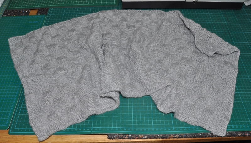 endlich nach Monaten ist er fertig mein Schalkragen, lang isser ca 100cm reicht schön um den Hals und deckt die Schultern ab, ich mags ned so wenn ums den Hals so gewörch ist, Angeschlagen hab ich 80M rechts und links immer in jeder reihe 4 r M gestrickt, so ringelte er sich ned ein, denn das mag ich ned. oben und unten jeweil 4 Reihen kraus rechts gestrickt. die Würfel sind 8M r und 8M l im Wechsel gestrickt, mit einer 5er nadel gestrickt das ganze