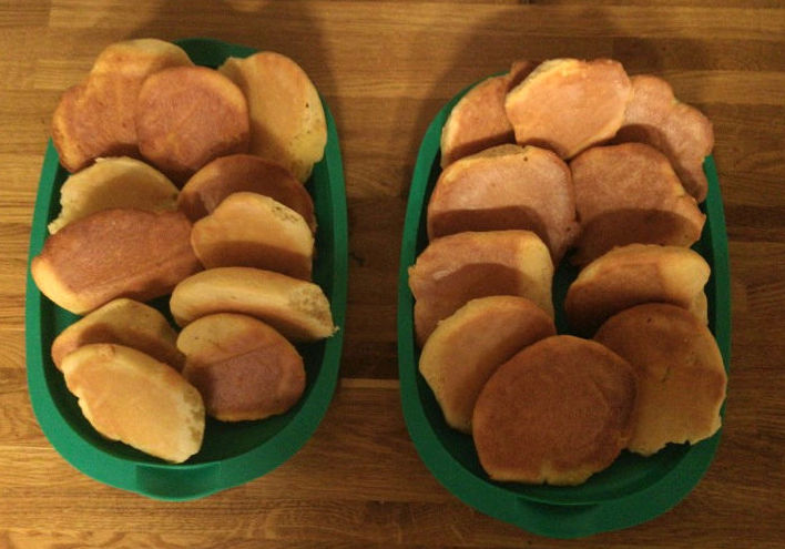 es sind so um die 90 Plätzle aus dem Rezept rausgekommen. Ich habe noch ein altes Backbuch von DR Oetker aus dem Jahr 1952, da ist das Rezept raus