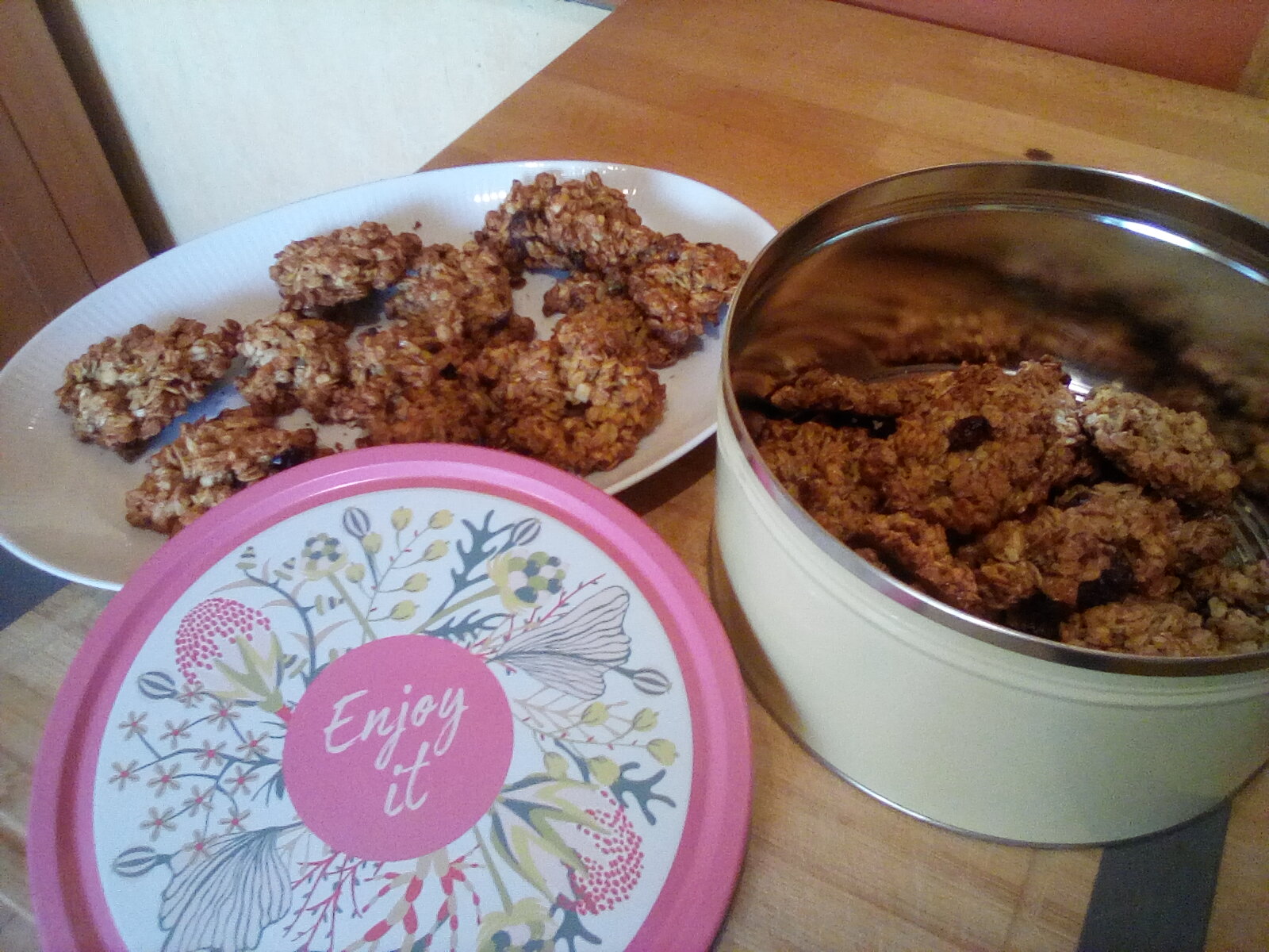 ein bisschen hab ich das Rezept geändert, 100g Schoko war mir zuviel, das ist eine ganze Tafel Schoki.... dann lieber ein paar Cranberries mit dazu.... also gut 50g Schoki und eine Handvoll berries....