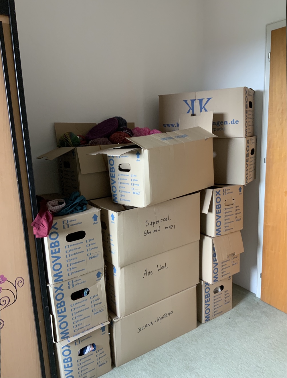 Hier stehen noch ca. 15 volle Umzugskartons….(und im Keller noch der  Wolleladen)….aber es werden weniger….
