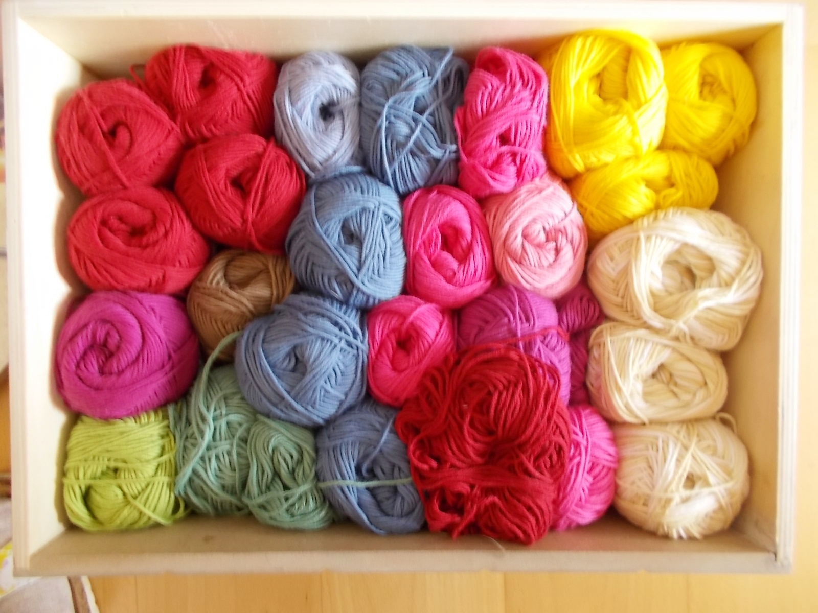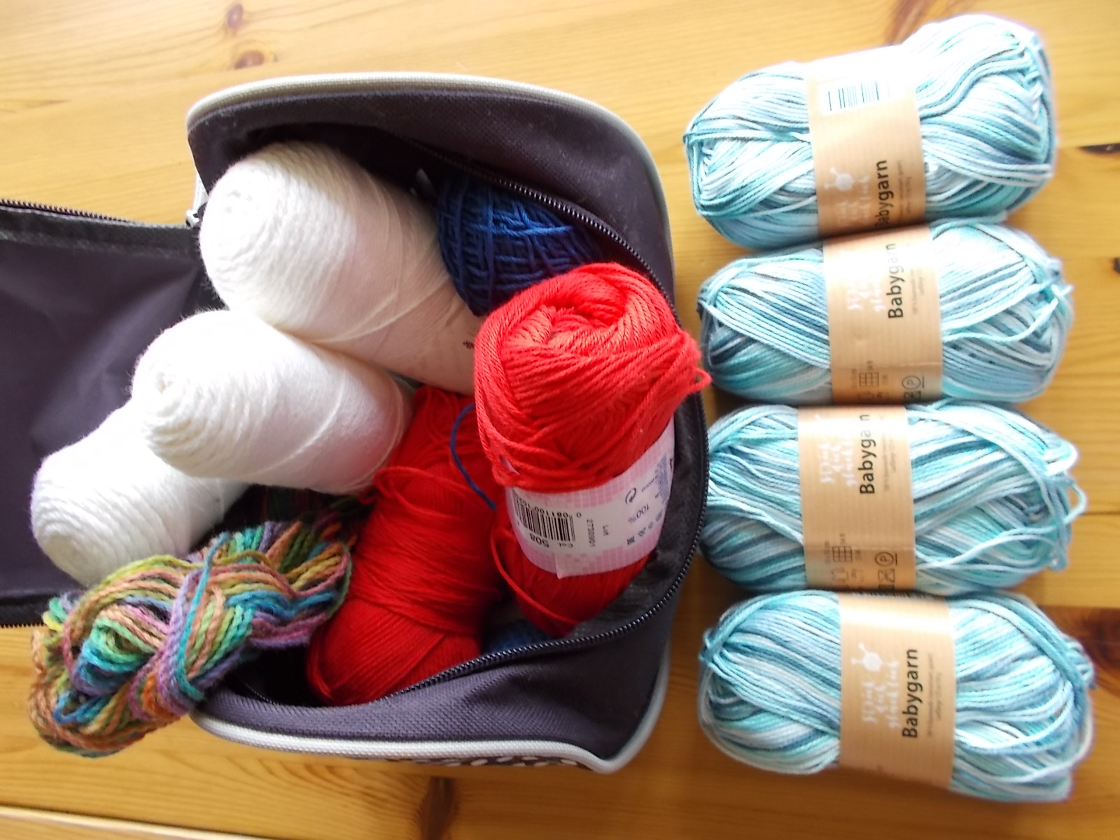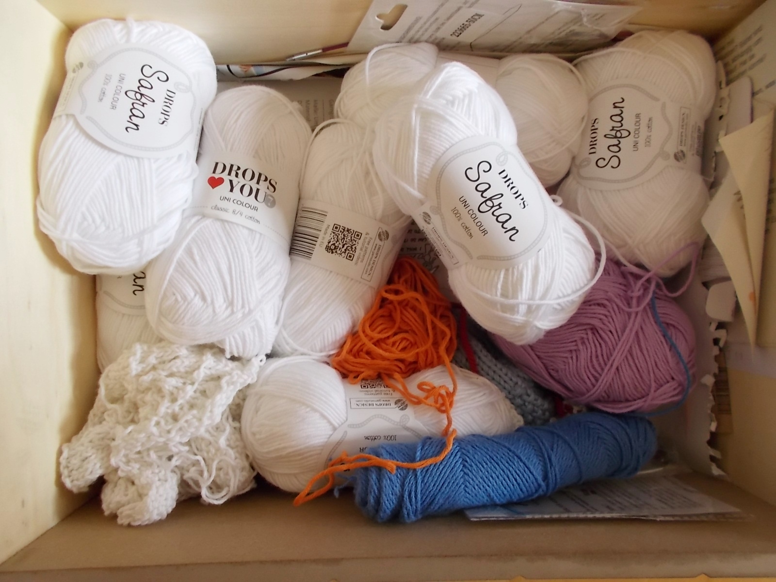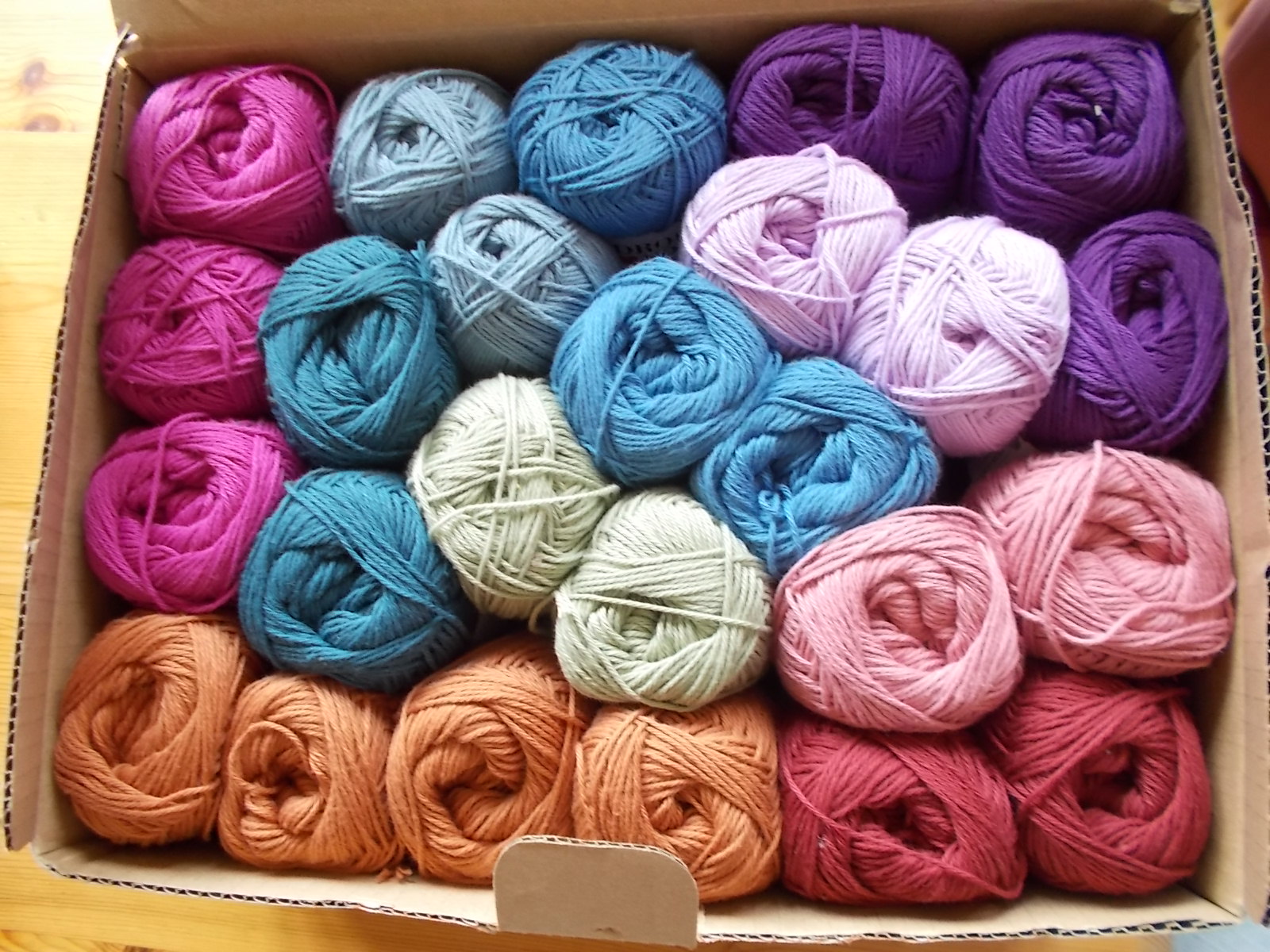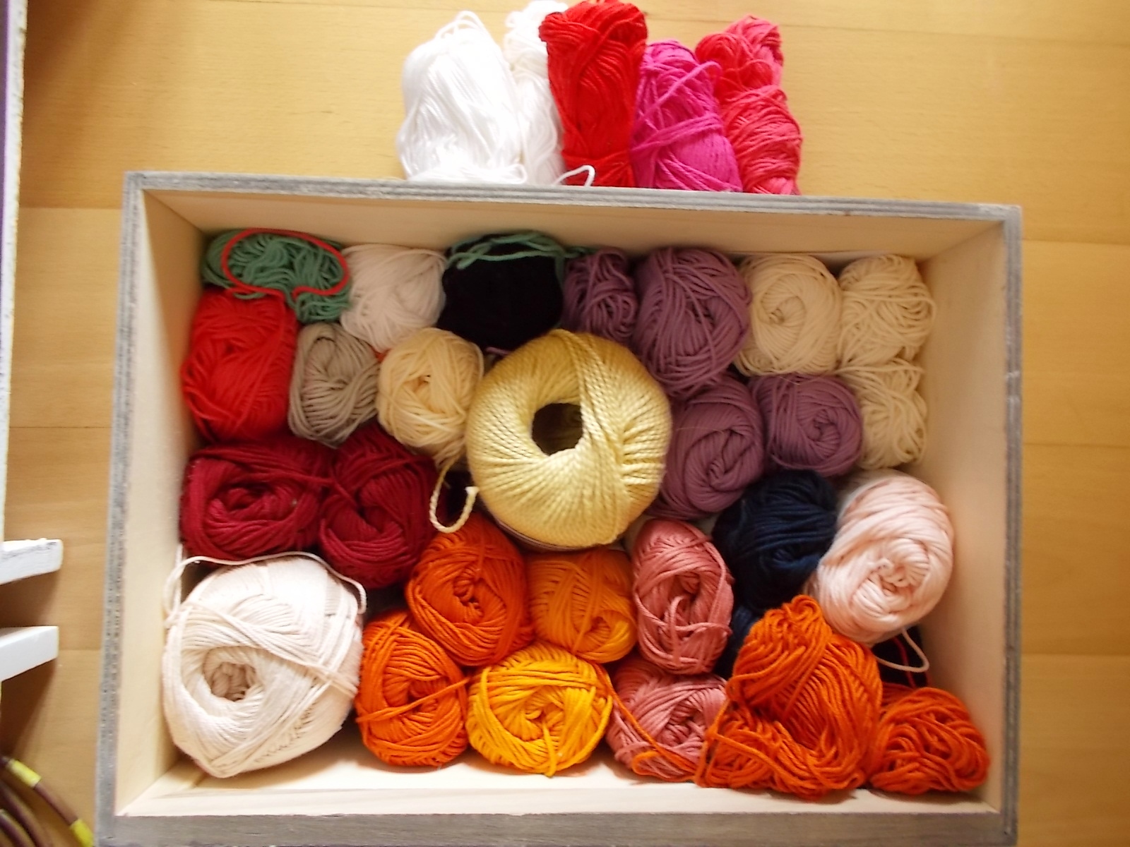 Und hier mein separater Baumwoll-Vorrat für die Therapiedecke, die noch ganz viel Wolle braucht: