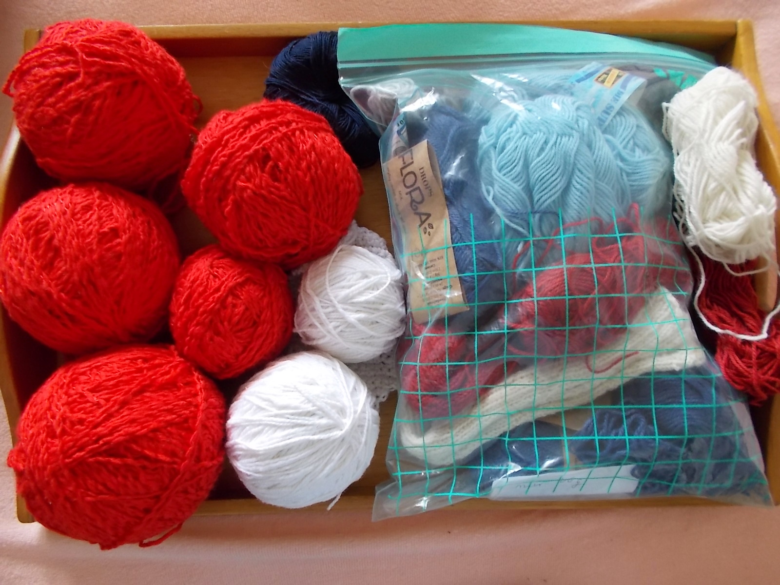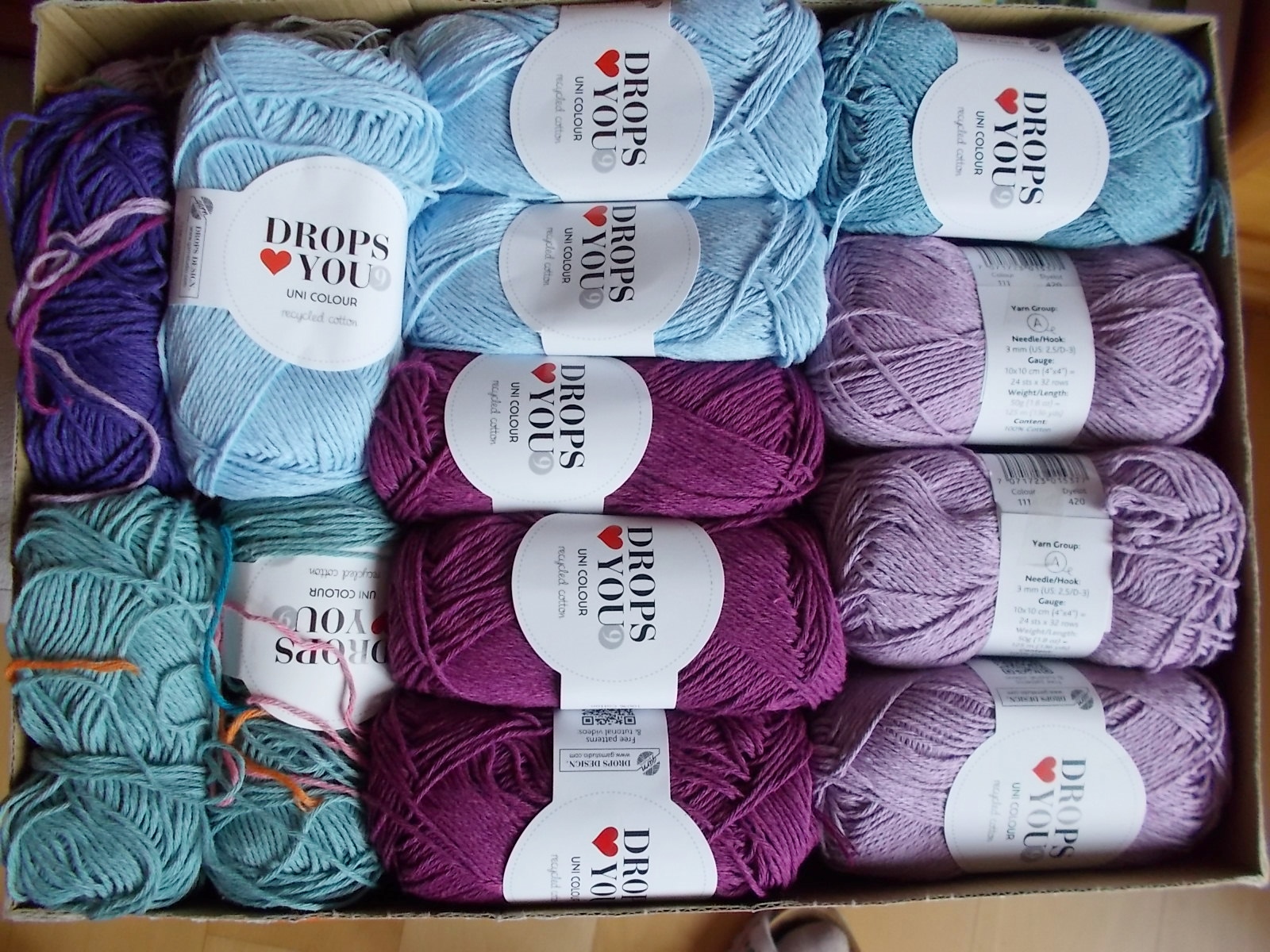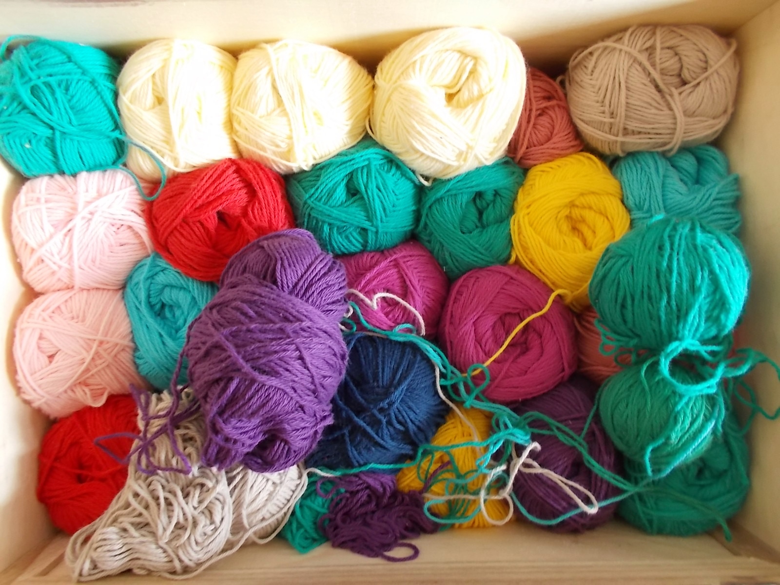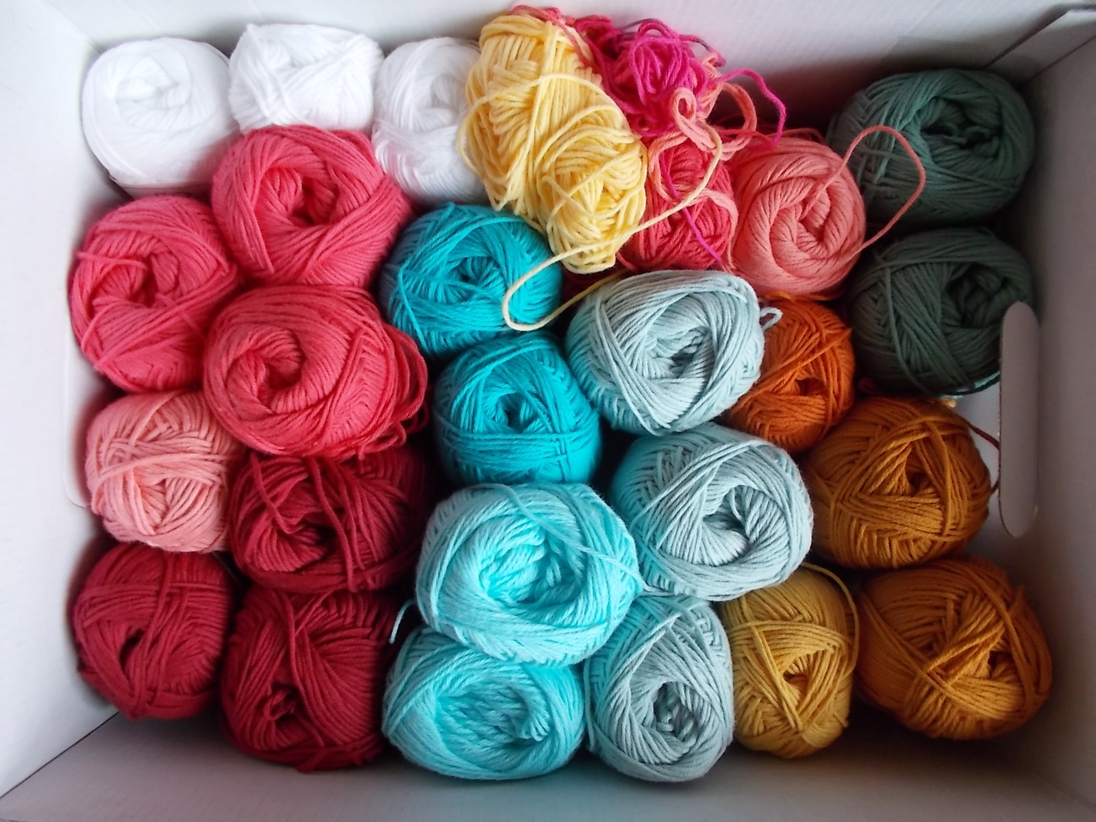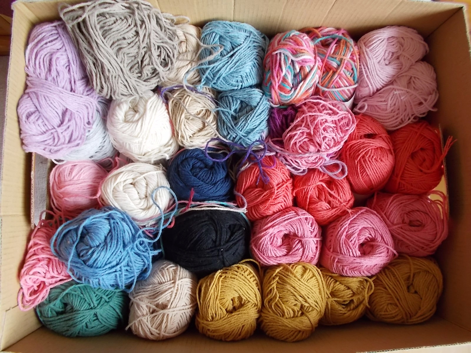 Und hier mein separater Baumwoll-Vorrat für die Therapiedecke, die noch ganz viel Wolle braucht: