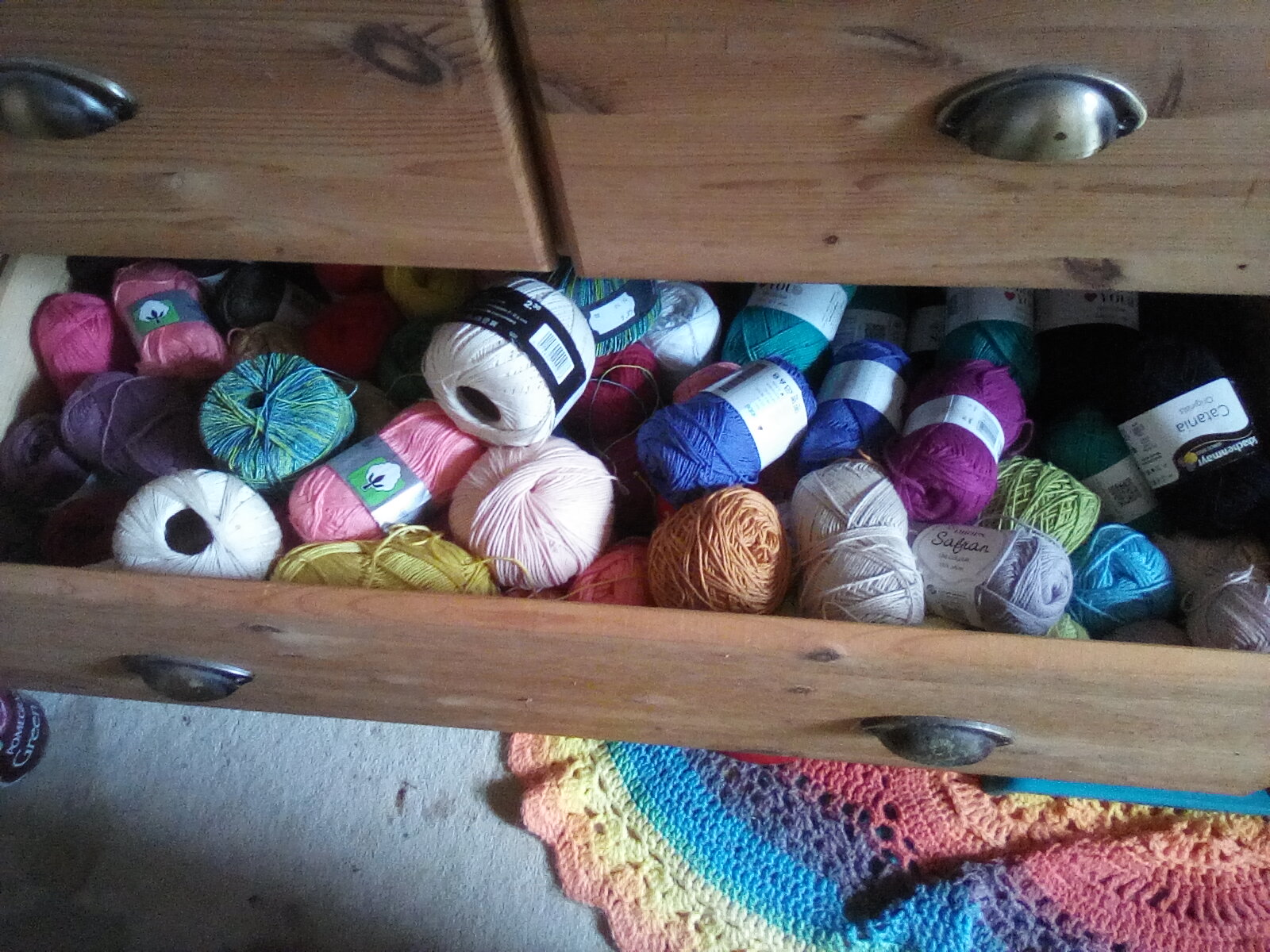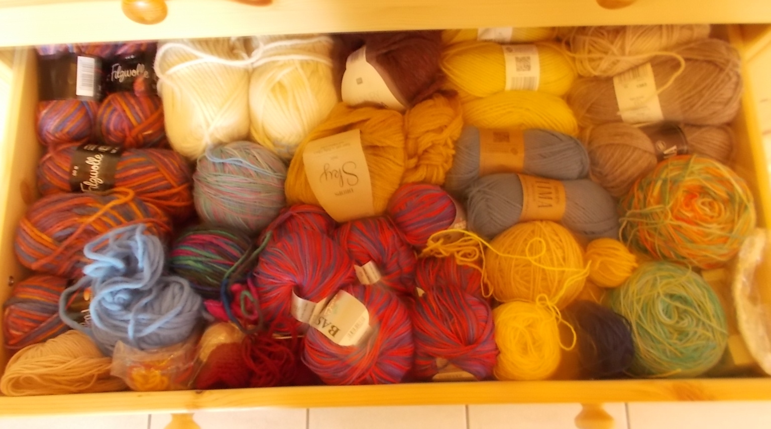 Alleine das Gefühl ist schon richtig gut, dass mir die Vorräte nicht ausgehen werden. Ich hab jetzt bei meiner Inventur erst gesehen, wo ich die Wolle überall gelagert habe. Oje, das war eine Offenbarung.