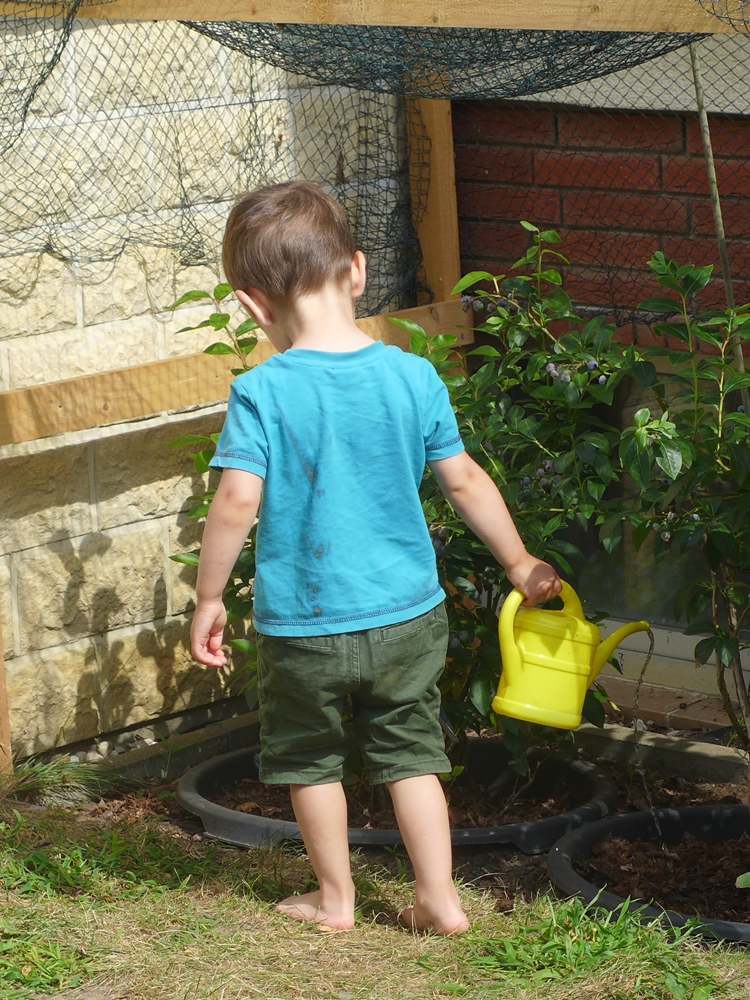 Oskar hat für sein neues Zuhause auch eine Pflanze in einen Blumentopf gepflanzt. Vorher wurde aber natürlich ausgiebig mit dem Blumentopf gespielt. Und am Ende hat er einen Feuerkäfer im Garten gefunden und in seinen Blumentopf - "den nehme ich mit!"