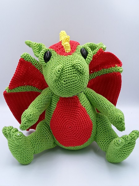 "Sie" hat ein rot-grün-schwarzes Dirndl mit angehäkelter weißer Bluse an, trägt ebenfalls einen Trachtenhut und hat eine passende Umhängetasche. Den Hals ziert ein hübsches Kropfband. Außerdem hat sie ein Lebkuchenherz geschenkt bekomen.