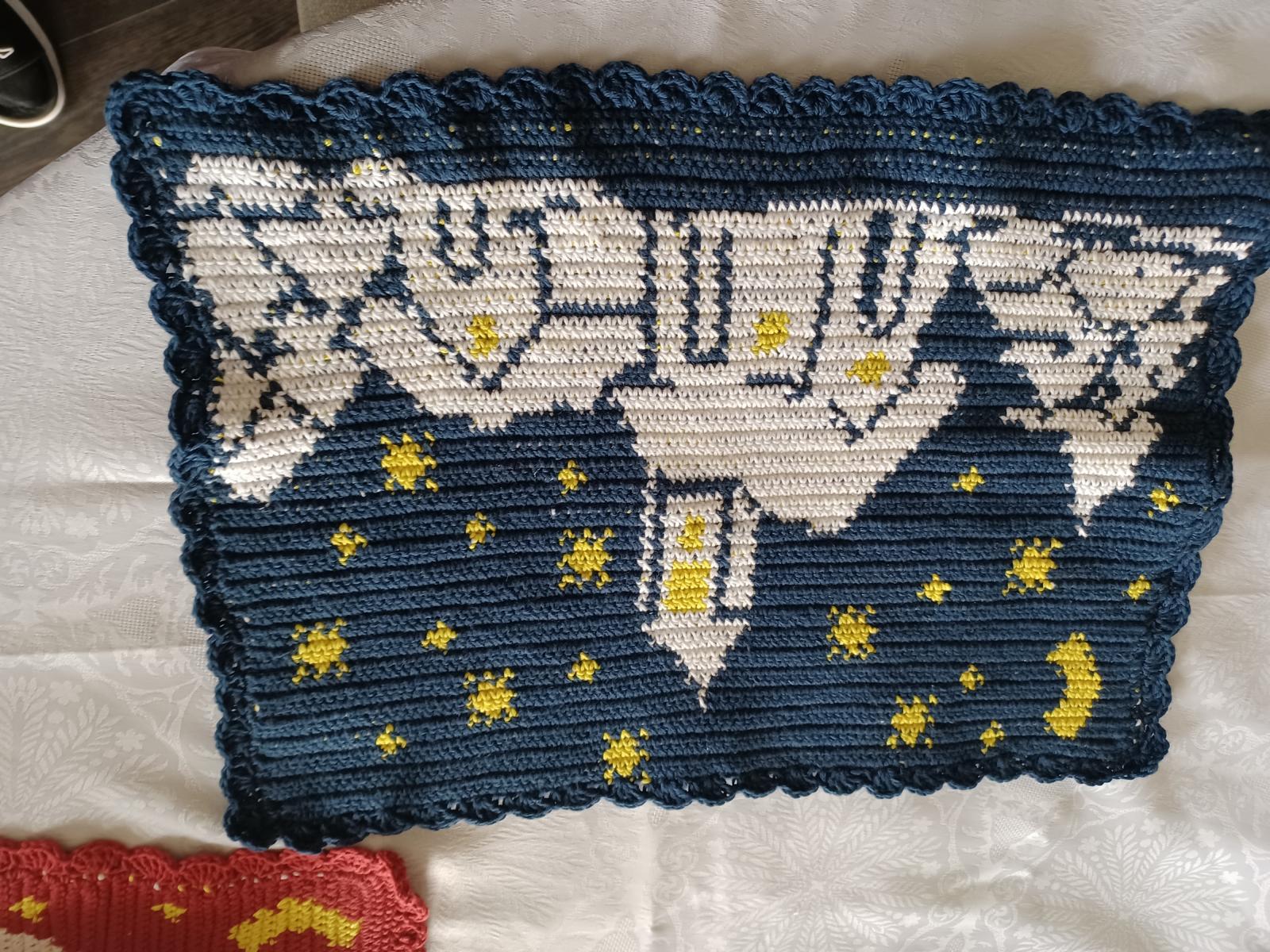 Meine Freundin hat sich übrigens total gefreut über die beiden Tischsets (Paris und Venedig). Sie findet sie sogar zu schade als Tischset ... könnte ja schmutzig werden. Ich hab sie aber überzeugen können. Ich kenne nun auch ihren nächsten Wunsch ... ein Tuch aus der mint-schwarzen Wolle. Das bekommt sie dann zu Weihnachten.