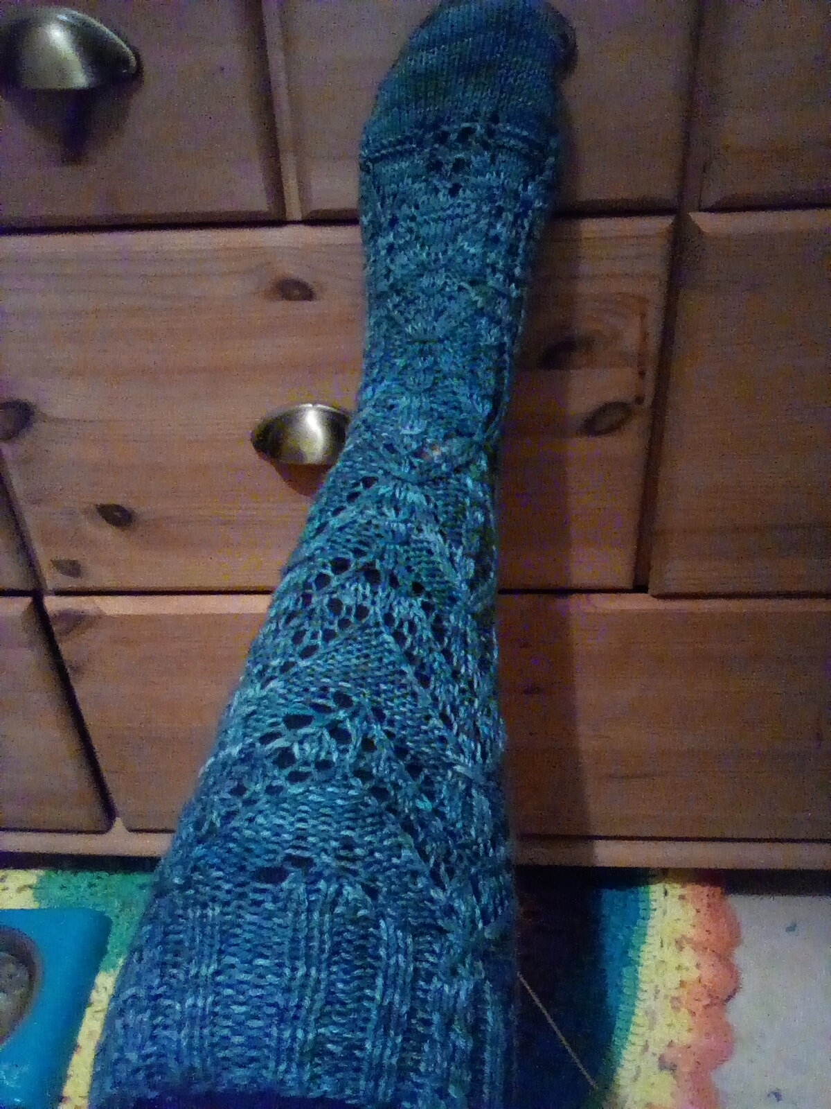Steffi, du hast meinen größten Respekt! Für die erste Socke gleich so ein Muster zu nehmen, wow. Die ist super geworden. Das sind ja sogar fast Kniestrümpfe, oder?