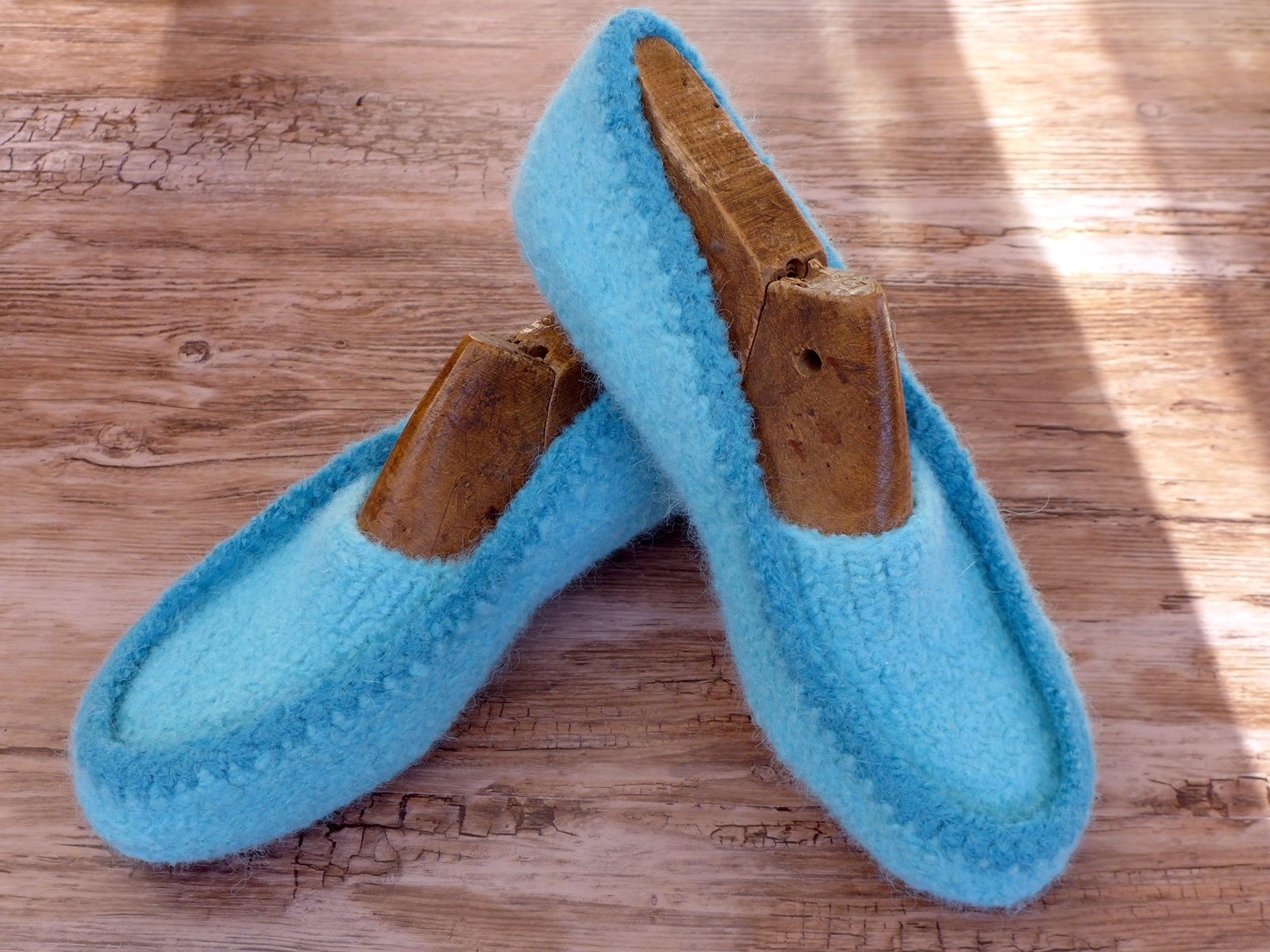 Ina, deine Hausschuhe sind einfach wunderschön, jedes für sich ist ein absolutes Unikat. Die Anfasser sind wirklich praktisch, kann ich mir gut vorstellen. Wie gesagt, wir lieben sie auch. Ich bekomm sie einfach nicht genauso gut hin wie du. Da hat jeder seine Qualitäten. Du bist Meisterin im Filzen, Ruth mit kleinen Häkelsachen, Ines mit tollen Häkelideen und Tapestry, Sonja mit wunderschönen Entwürfen für Doubleface und Tapestry. Das alles bewundere ich schon sehr. Schön, dass es hier so bunt zugeht und wir immer wieder was Neues zu sehen bkeommen.