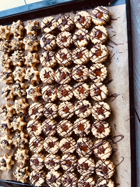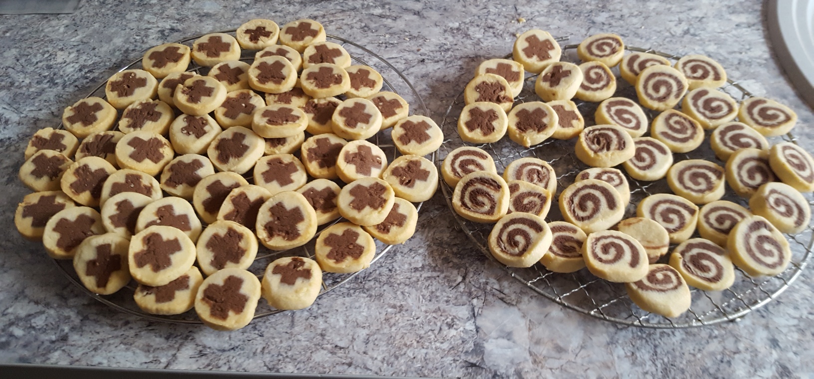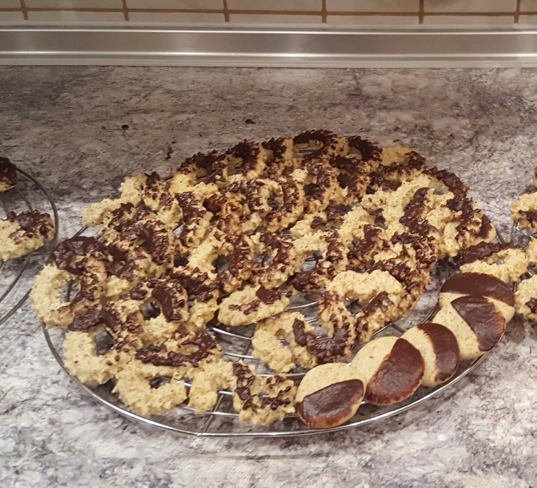 Hier gibt es noch ein Bild von meinen Plätzchen. Mein Mann konnte die wegfuttern ohne hinzugucken. Ich muss sie immer „einteilen“, damit für Besucher was übrig bleibt.