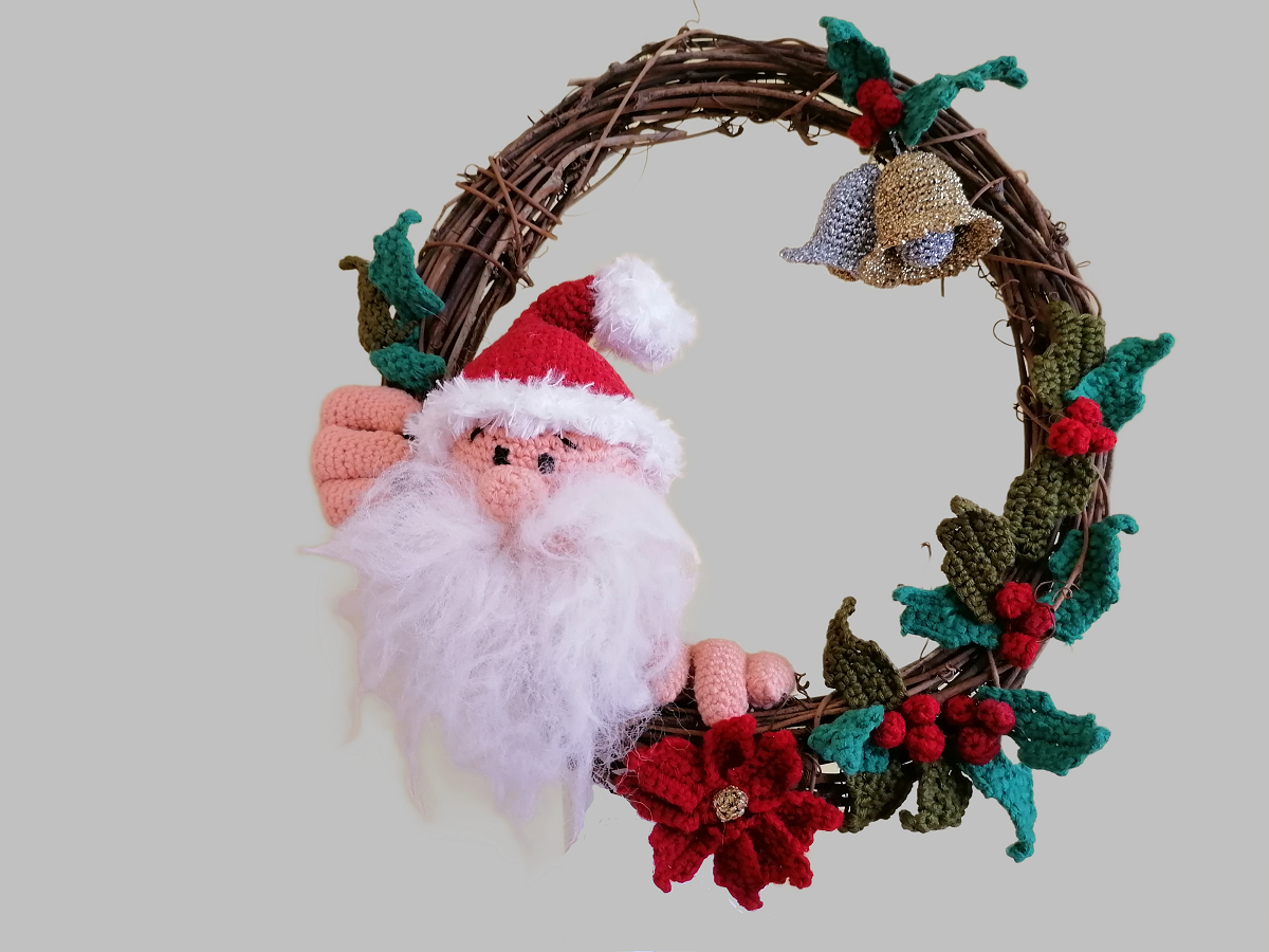 Nikolaus im Rentierschlittenhabe ich als Grundmaterial Baumwollgarn (Catania,LL 125 m / 50 g) verwendet. Die Pelzbesätze und der Bart am Weihnachtsmann sind mit Pelzgarn (Lenja baby smiles) gehäkelt. Der Schlitten schließlich wird mit goldfarbenem Schwammgarn umhäkelt. Die kufen des Schlittens sind aus Bastelhölzern (Eisstiele) gearbeitet.