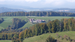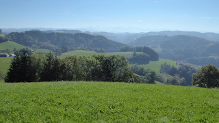 Vor dem Jura (unteres Bild) war ein dichtes Nebelband zu erkennen. Die Aufnahmen sind auf einem Hügel mit dem kuriosen Namen "Oberbühlchnubel" (815m) entstanden, wo wir Mittagsrast gemacht haben. Neben uns hat eine Gruppe Käsefondue genossen, wofür sie alle Zutaten und Geräte herauf schleppen mussten (geht nur zu Fuss!)