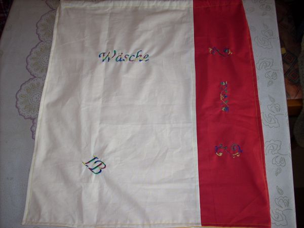ich hab mir, da ich ja öfters im KH und anschließend auf Reha war, Schuh und Wäschebeutel bestickt und genäht, beide Motive auch mal selber erstellt und digitalisiert