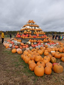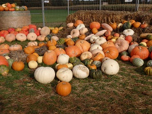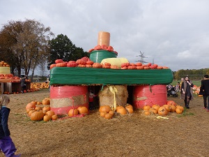 wir haben einen Ausflug nach Rade zum Hof Bartels gemacht. Dort gab es zwar nicht so musikalische Kürbisse wie bei Andrea, aber auch viele in allen Größen, Formen und Farben. Angeboten wurden auch Bauerngolf und ein Maislabyrinth. Für die Kinder gab es Strohkletterberge.