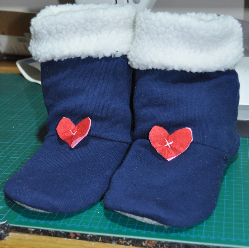 für meine Schwester, sie klagt andauernd über kalte Füße, also hab ich ihr son paar Kuschelschlappen genäht
