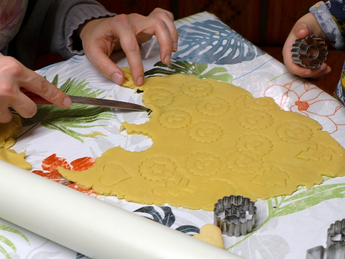Gestern habe ich mit dem jüngsten Enkel und der Schwiegertochter Plätzchen gebacken. Ganz viele sind schon vor ihrer Vollendung im kleinen Mund verschwunden. Es hat viel Spaß gemacht und schon auf Weihnachten eingestimmt. Aber wir backen noch mehr, denn Plätzchen essen sich ja so schnell auf.
