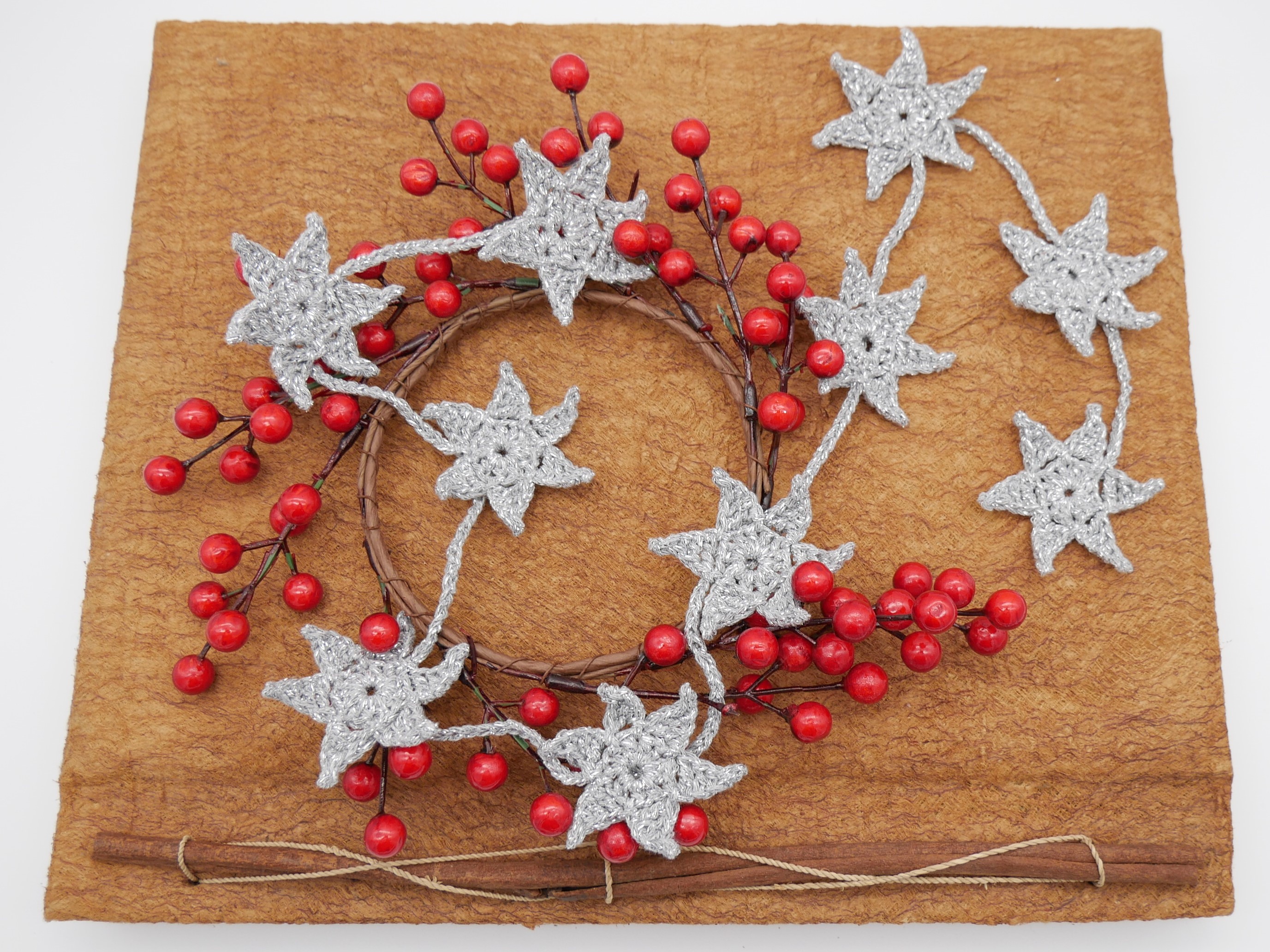 3) Sterne - der Stern mit Schweif wird auf einer Kombination aus tunesischem und herkömmlichen Häkeln gearbeitet. Normale Häkelnadel ohne dickem Griff ist ausreichend.
