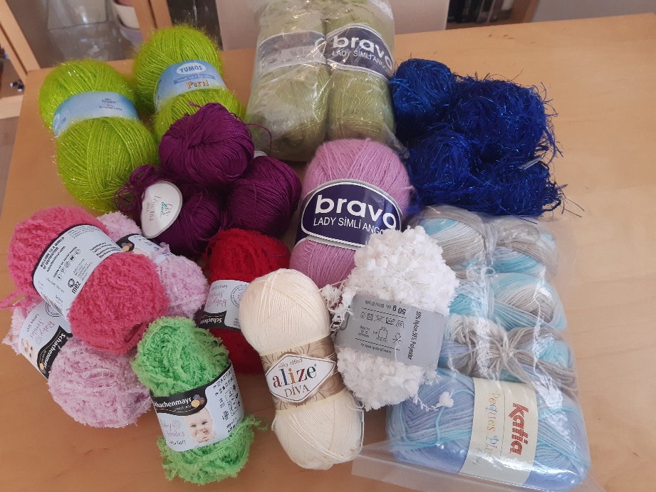 Euch hatte ja interessiert, was von meinen Sachen eine Rundreise gemacht und niemandem gefallen hatte. Auch das zeige ich Euch gern. Es sind hauptsächlich dicke Garne, die aber auch sehr schön sind. Nun ja, sie wollten eben bei mir bleiben.